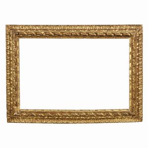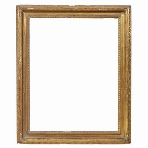 CORNICE, EMILIA, SECOLO XVII in legno intagliato e dorato, battuta sale su profilo a perlinatura, foglie aperte [..]
