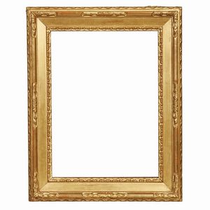 CORNICE, ITALIA CENTRALE, INIZI SECOLO XIX in legno intagliato e dorato, battuta a mezzefoglie dorata sale su [..]
