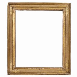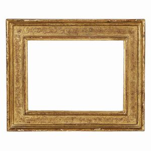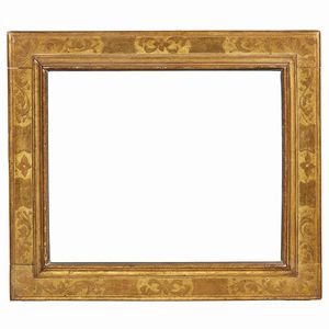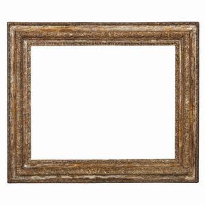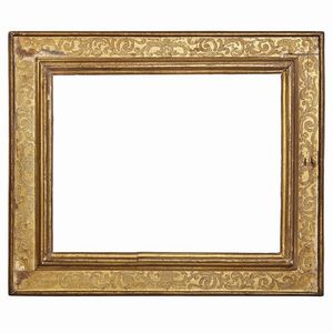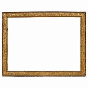 CORNICE, TOSCANA, SECOLO XVI in legno intagliato, dorato e punzonato, battuta si porta su profilatura a più [..]