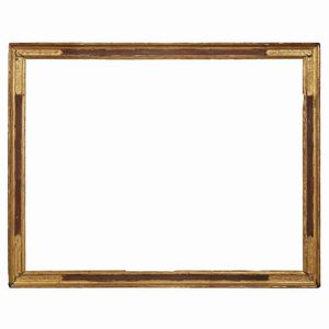 CORNICE, ITALIA CENTRALE, SECOLO XVII in legno dorato e dipinto di rosso, battuta dorata si porta su profilo liscio [..]