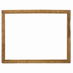 CORNICE, VENEZIA, SECOLO XVI in legno intagliato, dorato e bulinato, battuta si porta su sagoma a cassetta interamente [..]