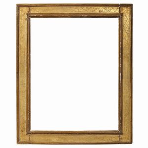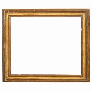 CORNICE, ITALIA SETTENTRIONALE, SECOLO XVIII in legno dorato, battuta liscia sale su gola estroflessa e si porta [..]