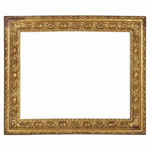 CORNICE, LOMBARDIA, SECOLO XVII in legno intagliato e dorato, battuta dorata si porta su fascia profilata decorata [..]