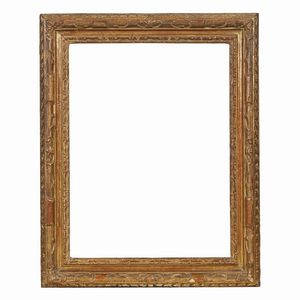 CORNICE, ITALIA MERIDIONALE, SECOLO XVII in legno intagliato e dorato, battuta sale su gola a motivi fogliacei [..]