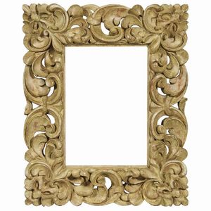 CORNICE, FIRENZE, SECOLO XVII in legno intagliato e laccato, battuta a gola interamente contornata da ricco intaglio [..]