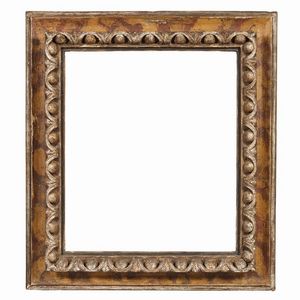 PICCOLA CORNICE, ITALIA SETTENTRIONALE, SECOLO XIX in legno intagliato e dorato, battuta modanata si porta su [..]
