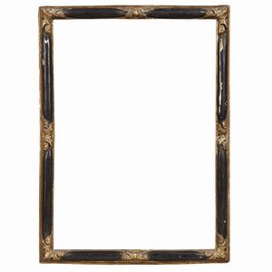 CORNICE, LOMBARDIA, SECOLO XVIII in legno intagliato, ebanizzato e dorato, battuta dorata si apre su cassetta [..]