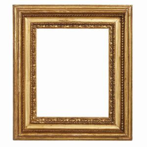 COPPIA DI CORNICI, LOMBARDIA, INIZIO SECOLO XIX in legno intagliato e dorato, battuta a perline si affianca a [..]