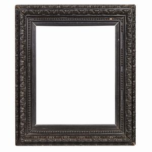 CORNICE, ITALIA SETTENTRIONALE, SECOLO XVII in legno ebanizzato, battuta con modanature sale in perlinatura e [..]