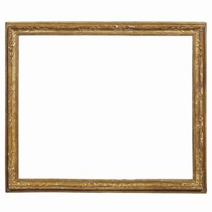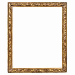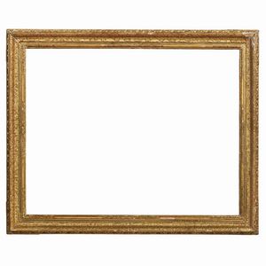 CORNICE, ITALIA SETTENTRIONALE, SECOLO XVIII in legno intagliato, dorato e bulinato, battuta si porta su profilo [..]