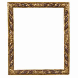 CORNICE, LOMBARDIA, SECOLO XVII in legno intagliato e dorato, battuta dorata si porta su fascia profilata decorata [..]