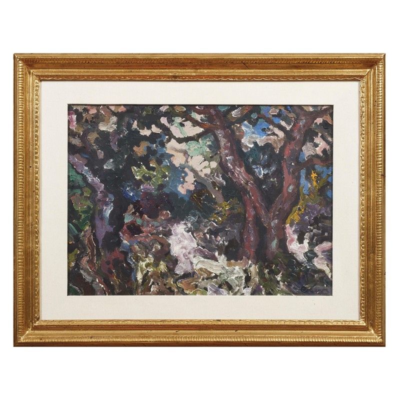 CARLO LEVI (Torino 1902 - Roma 1975) Bosco olio su tela cm 48,2x67,2 firmato in basso a destra al retro firmato e iscritto “70185D” al retro sul telaio e supporto timbro Galleria Parametro, Roma
