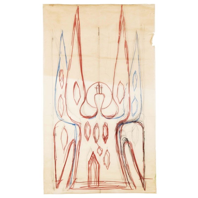 GIO' PONTI (Milano 1891 - 1979) COPPIA DI DISEGNI I. Grande Angelo (Progetto per Cattedrale di Los Angeles) 1967 matita e penna colorata su carta velina cm 84x50
