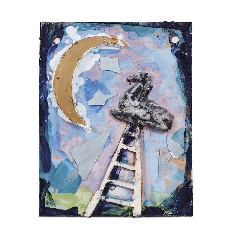 GIOSETTA FIORONI (Roma 1932) Il destriero d'Oltretomba 2006 formella in maiolica smaltata realizzata con Bottega Gatti, Faenza cm 43x33 al retro firmata, datata e titolata
