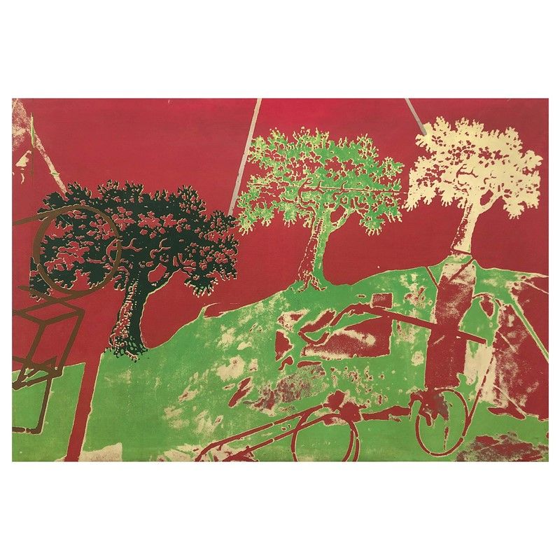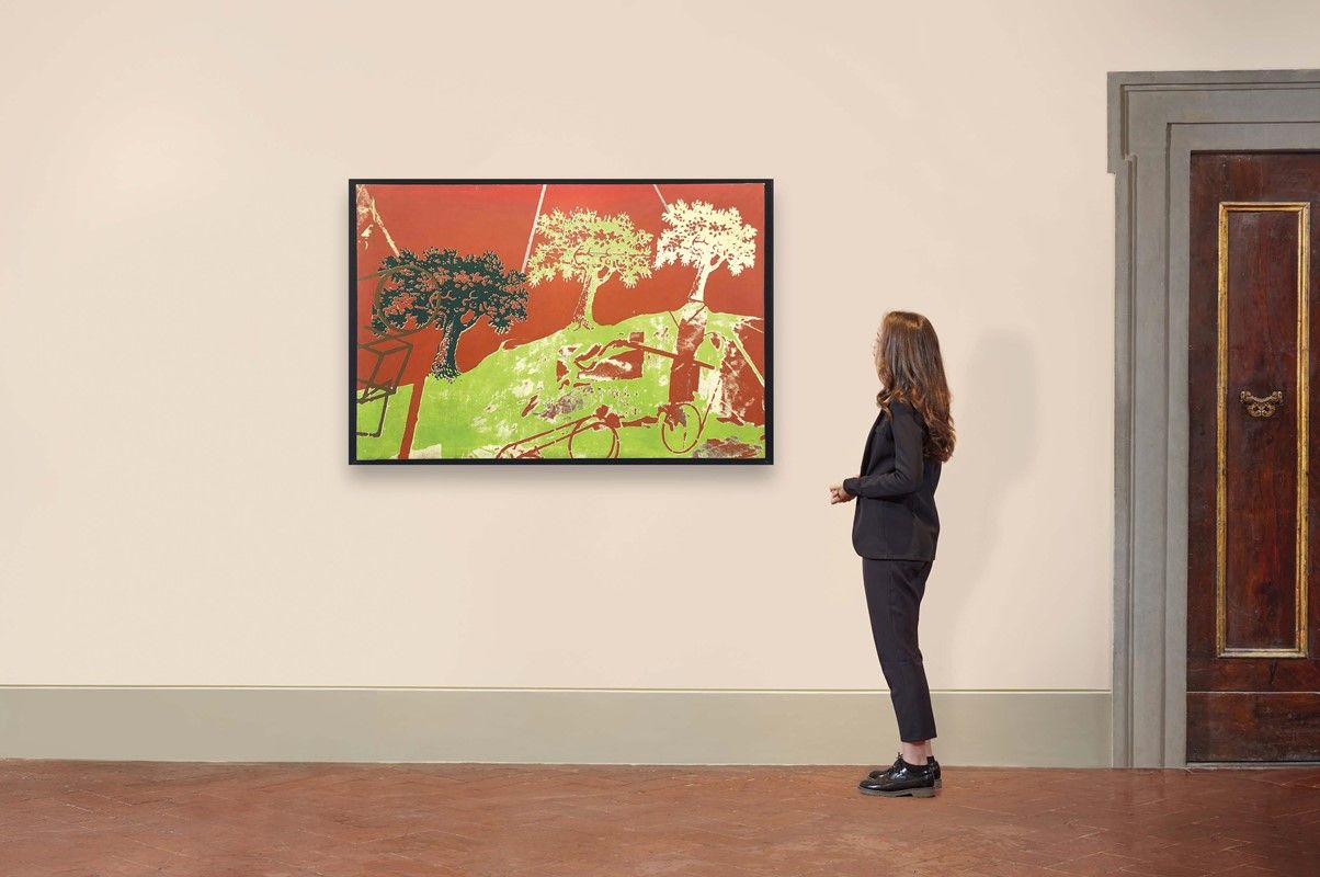 MARIO SCHIFANO (Homs 1934 - Roma 1998) Senza titolo 1971-72 serigrafia su tela, esemplare unico cm 97x144 al retro firmato in basso a sinistra