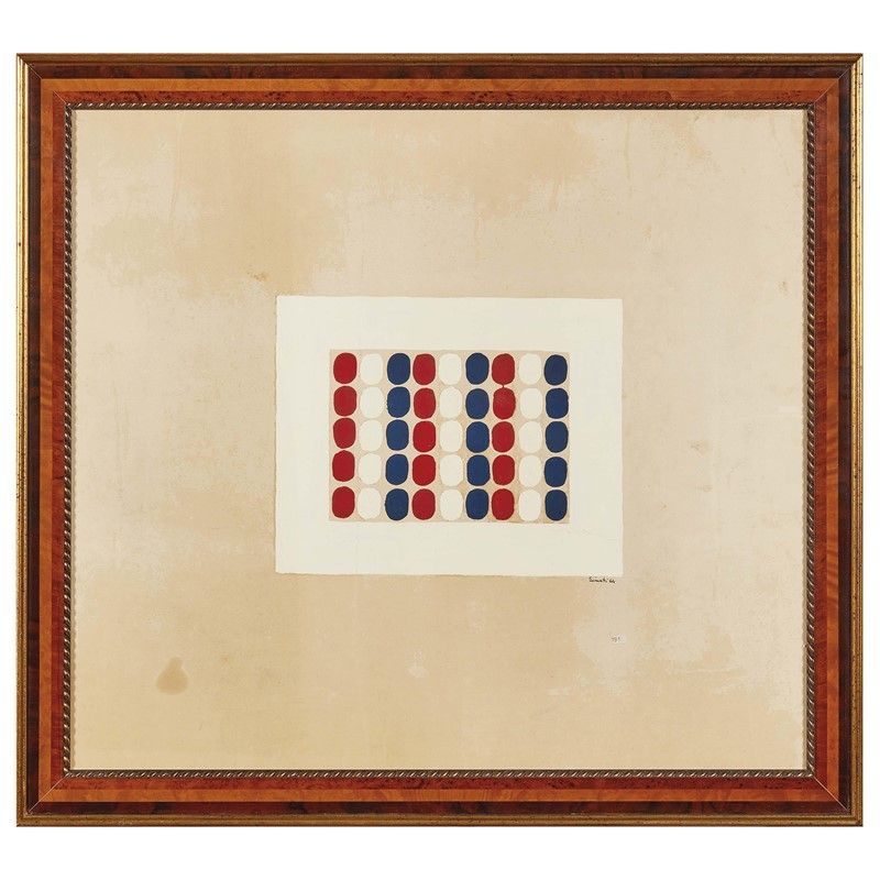 TURI SIMETI (Alcamo 1929 - Milano 2021) 45 ovali 1964 smalto su carta telata cm 55x61 firmato al centro a destra