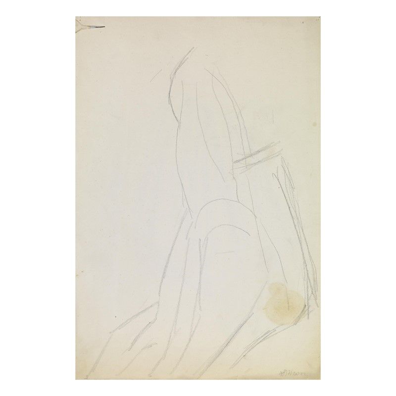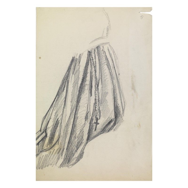 UBALDO OPPI (Bologna 1889 - Vicenza 1942) Tratteggio della gonna e del rosario che pende dalla cinta e termina con la croce matita su carta Masco cm 50x34,5 in alto a destra iscritto a matita "5" in alto a sinistra filigrana tipologia carta al retro altro bozzetto a matita