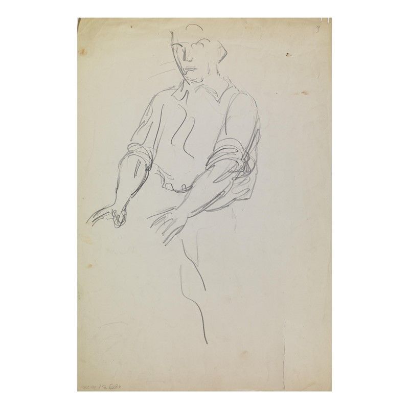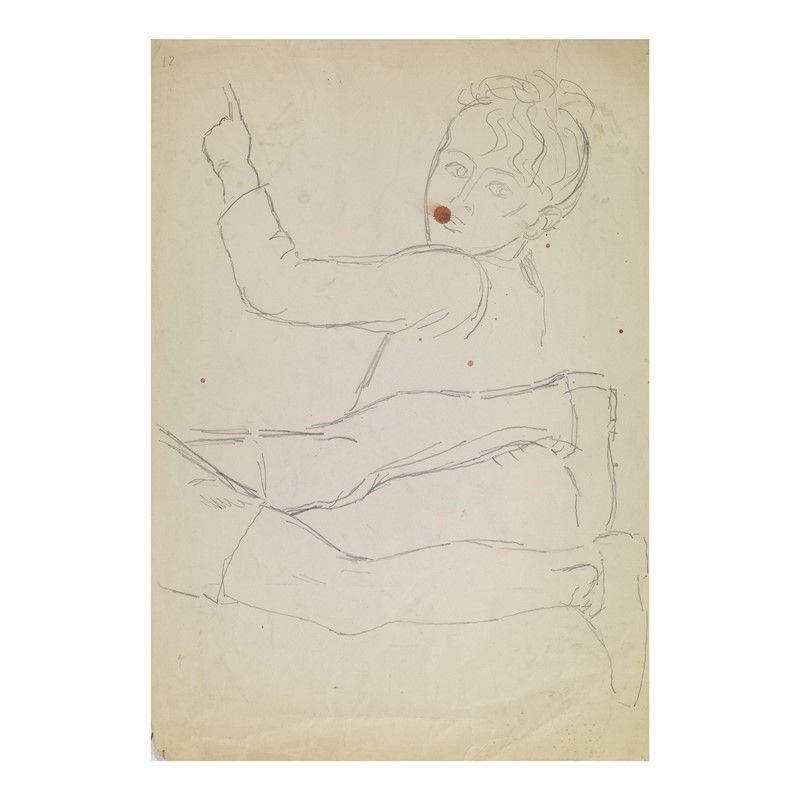UBALDO OPPI (Bologna 1889 - Vicenza 1942) Busto, testa e braccio sinistro alzato di un fanciullo, due gambe con calzoncini e scarpe / Figura femminile inginocchiata con le mani tese in avanti matita su carta cm 50x34,5 in alto a destra iscritto a matita "9" al retro in alto a sinistra iscritto a matita "12"