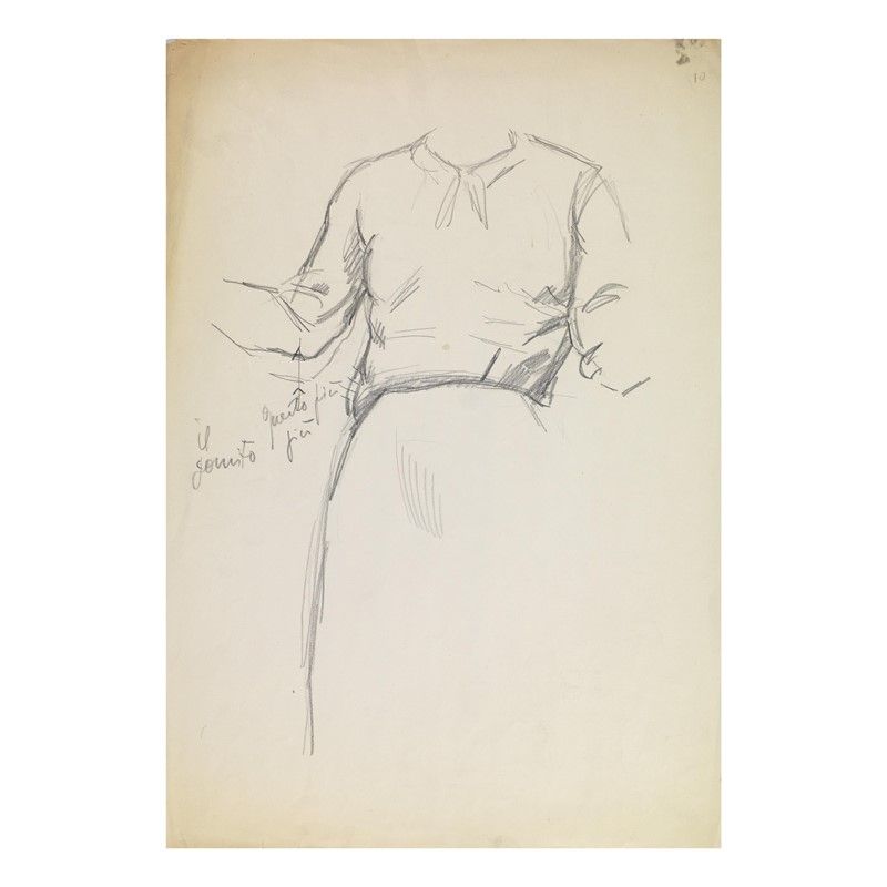 UBALDO OPPI (Bologna 1889 - Vicenza 1942) Figura femminile con nota autografa con l'indicazione della posizione del gomito. Disegno riferibile alla moglie di Oppi matita su carta cm 50x34,5 in alto a destra iscritto a matita "10" al retro altro bozzetto a matita iscrizione a lato sinistro al centro