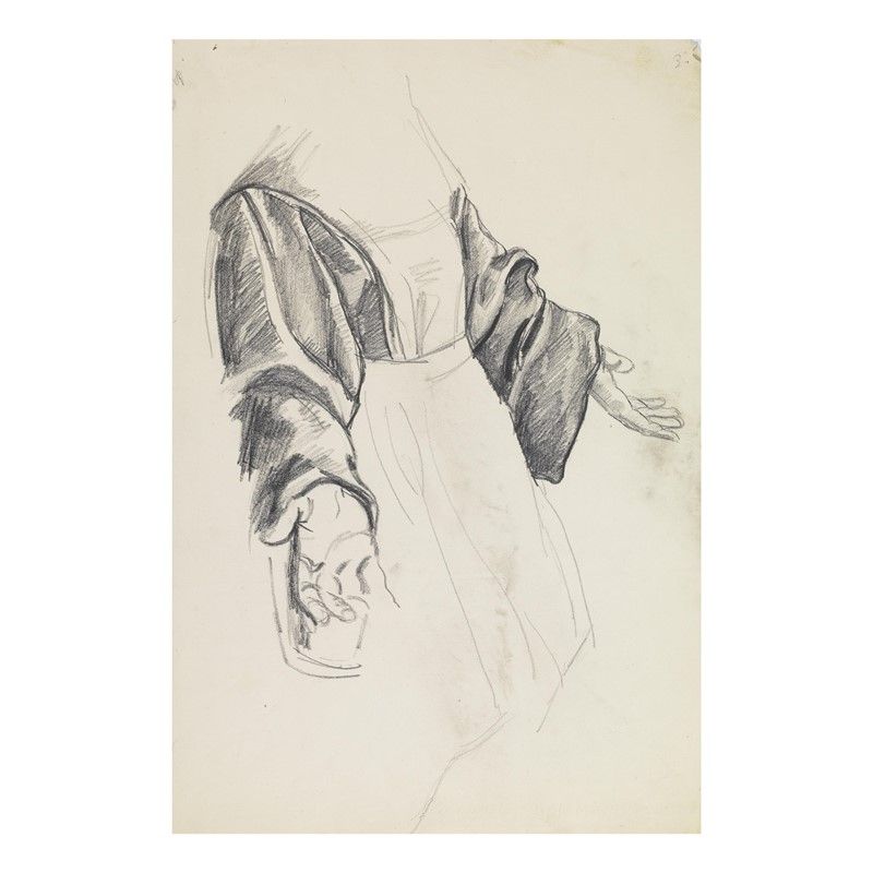 UBALDO OPPI (Bologna 1889 - Vicenza 1942) Tratteggio e ombreggiatura delle maniche e disegno delle mani matita su carta Masco cm 50x34,5 in alto a destra iscritto a matita "3" filigrana Masco in alto a destra in basso filigrana tipologia carta