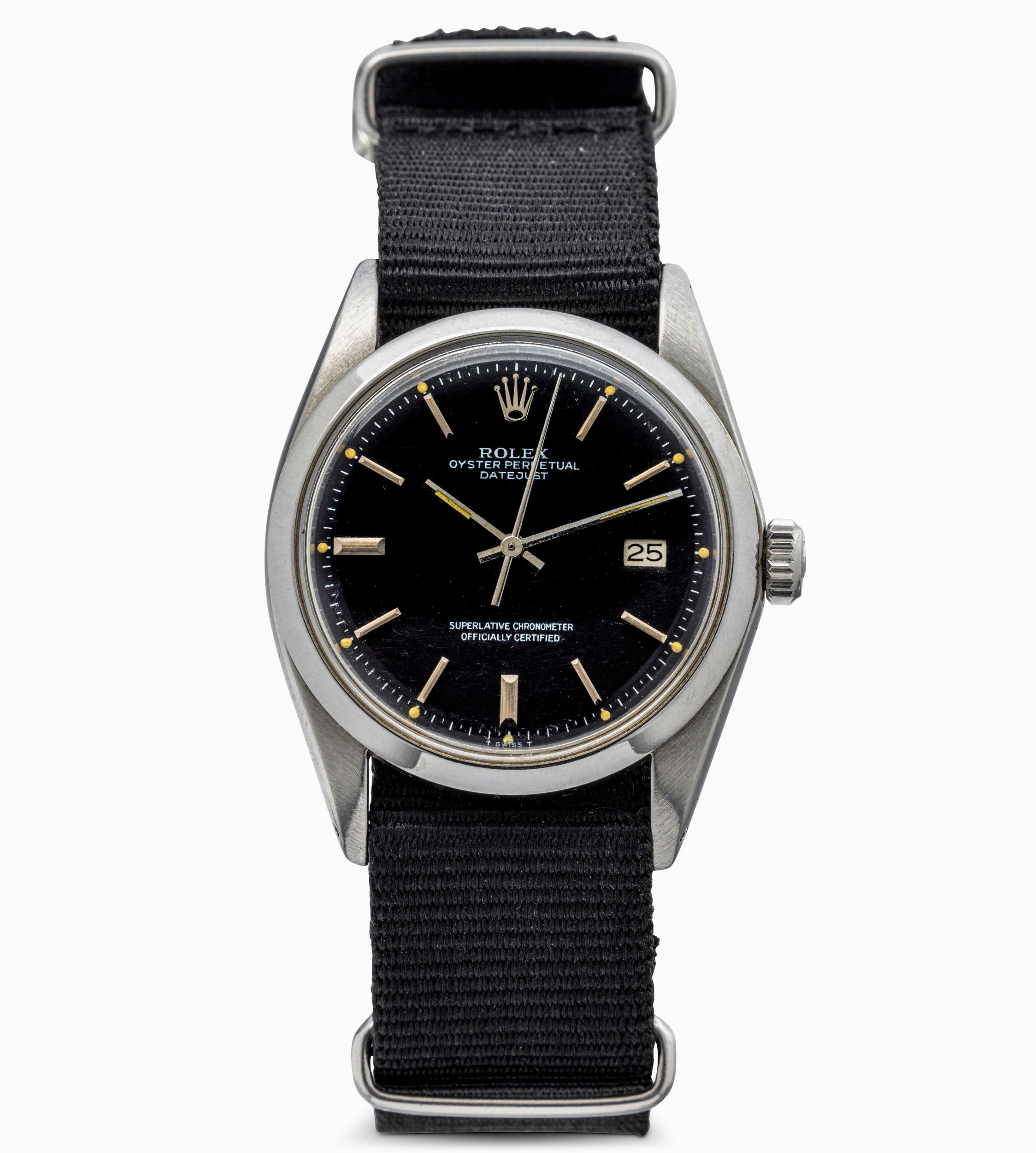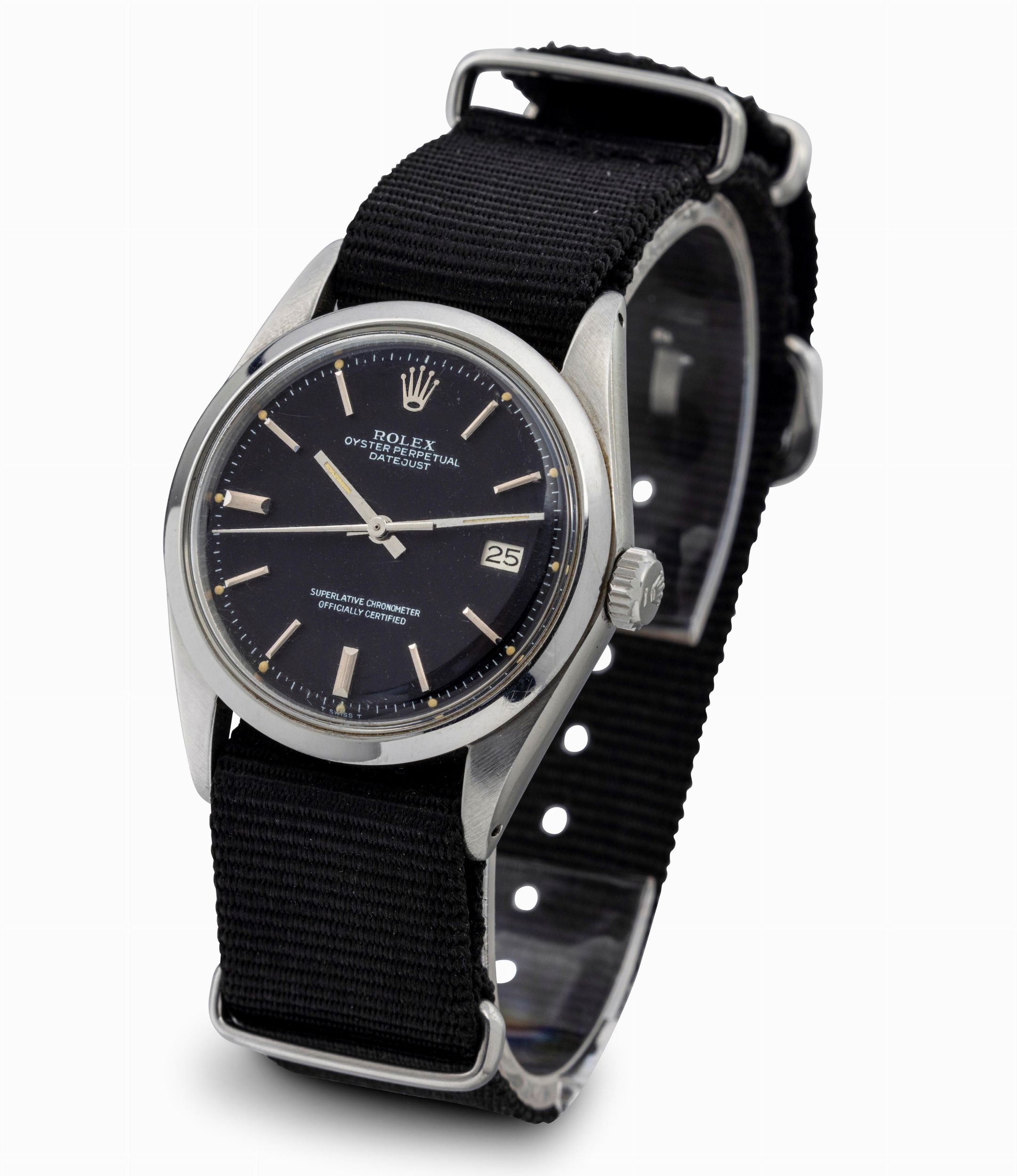 Datejust ref 1600 in acciaio inossidabile, ghiera liscia e quadrante nero opaco [..]