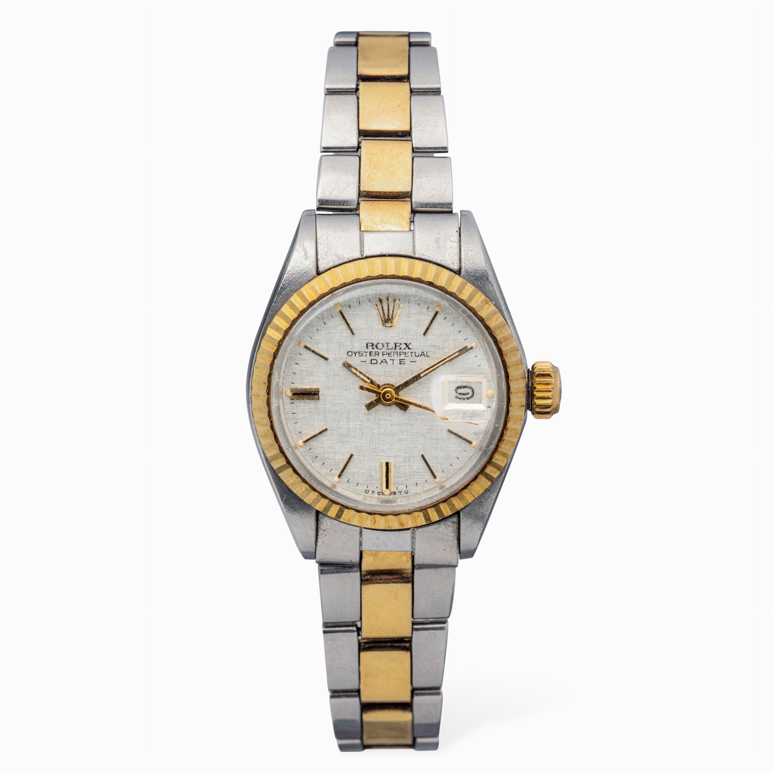 Elegante Lady Date ref 6917, acciaio e oro, ghiera zigrinata, quadrante effetto [..]
