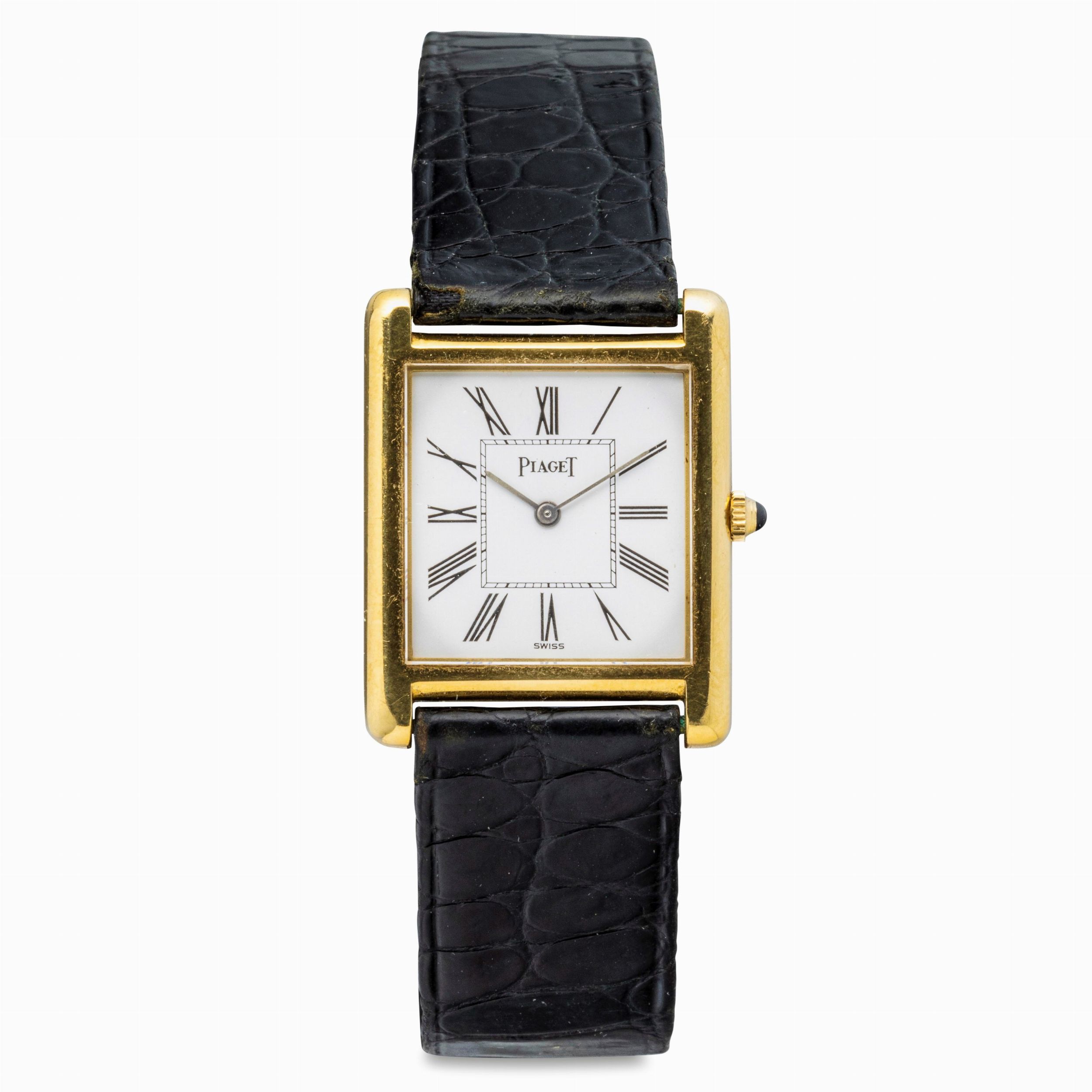 Fine Tank in oro giallo 18k, quadrante bianco con numeri Romani, movimento carica [..]