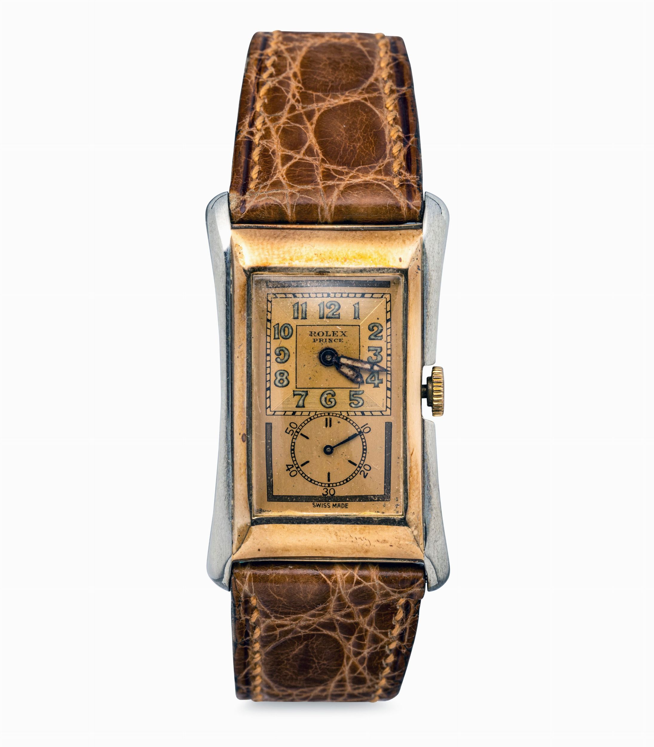 Prince Brancard ref 1490 raro ed elegante orologio di forma, in acciaio e oro rosa, [..]