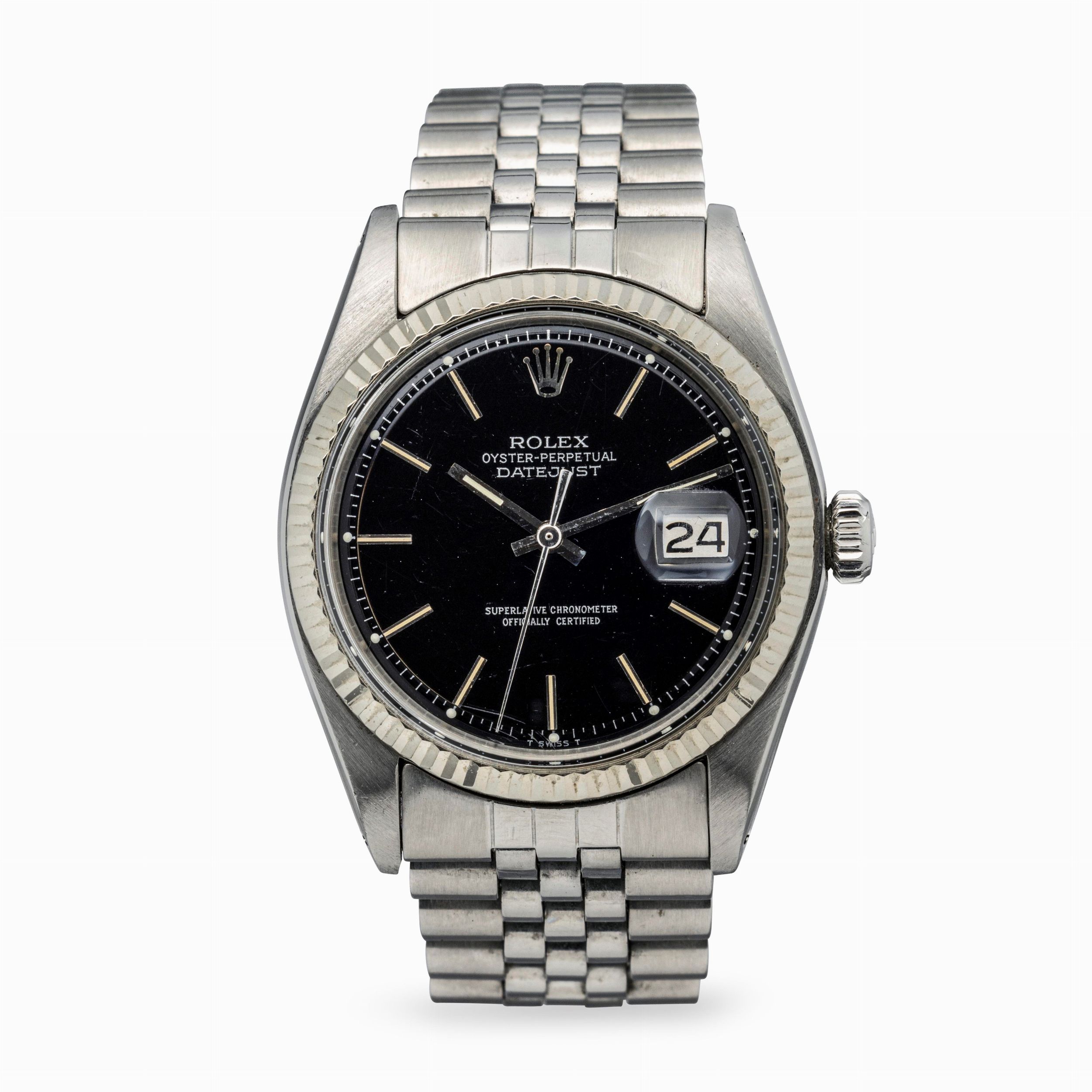 Raffinato Datejust ref 1603 in acciaio con quadrante nero lucido grafica argento [..]