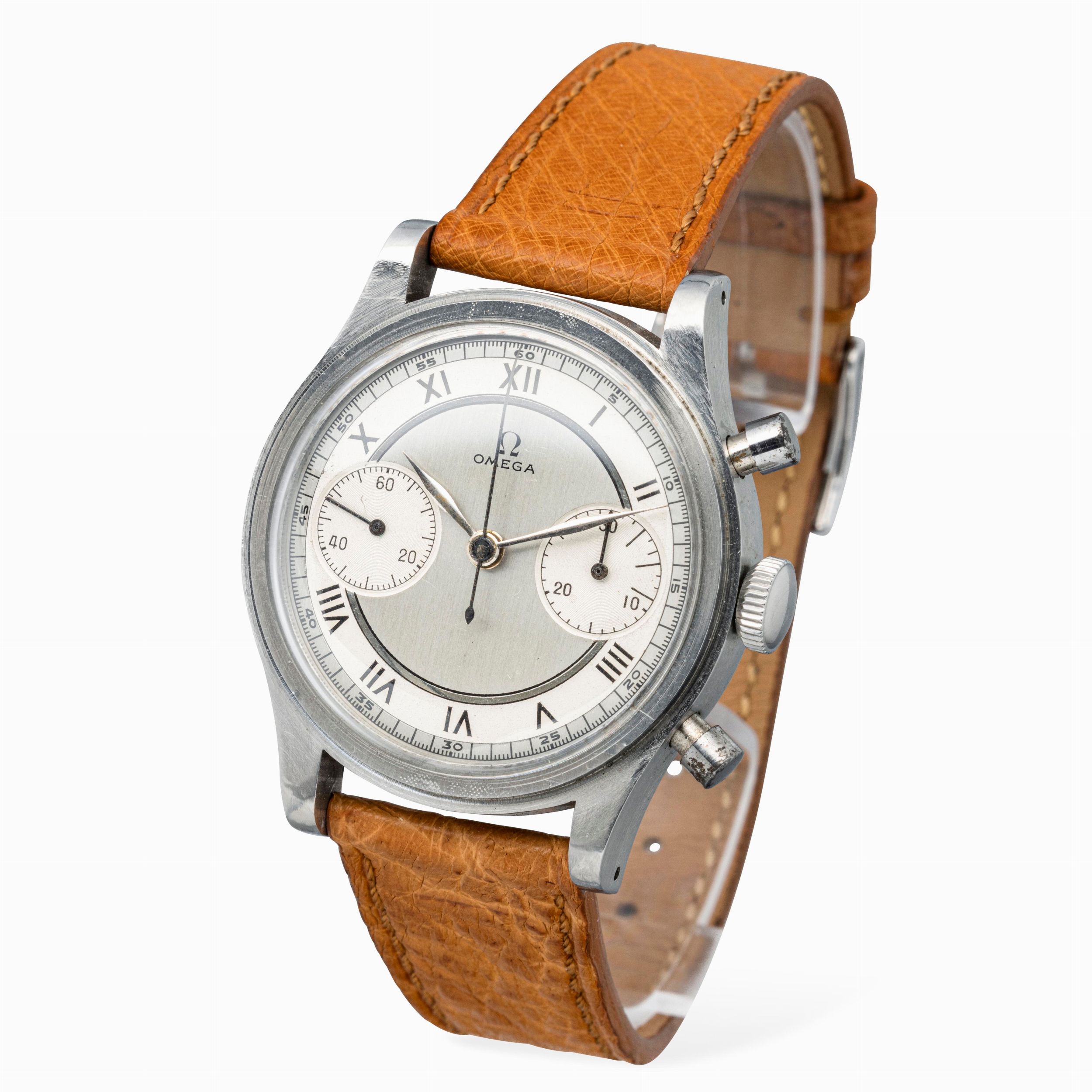Rarissimo cronografo due contatori con tasti a pompa, quadrante Lemrich grigio tre [..]