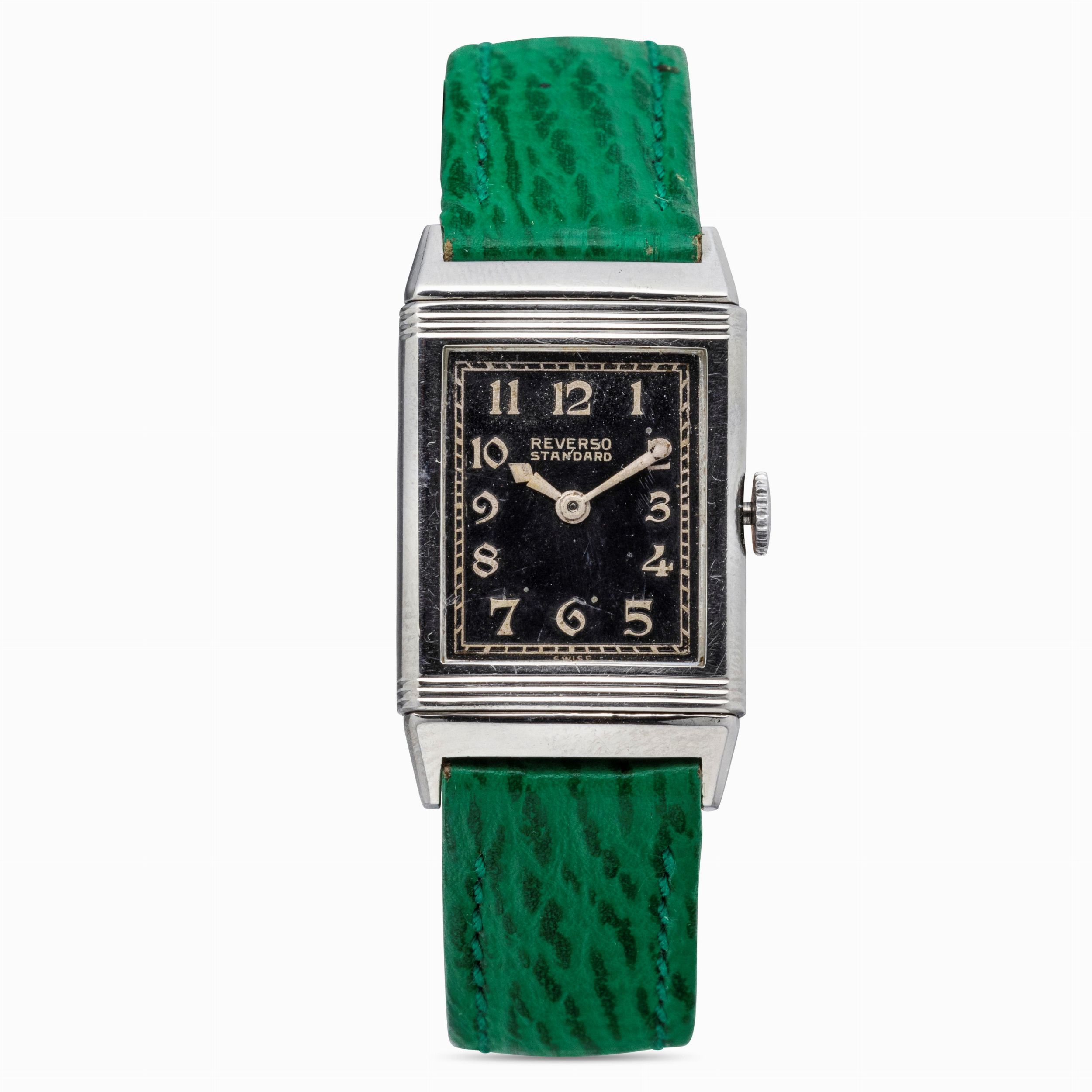 Raro e iconico Reverso Standard in acciaio Staybright, quadrante nero con numeri [..]