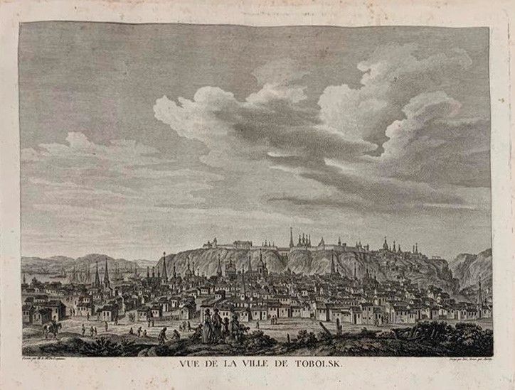 Russia - Siberia Album composito in formato in folio della metà del settecento, in apertura 5 tavole disegnate da de Nicolas Louis Lespinasse ed incise da Nee, firmate in lastra dagli autori, mm. 300 x 760, tra queste la veduta di Cazan, la Vue de la Ville de Catherinebourg, e la veduta di Kiakta, seguono 4 tavole su rame che raffigurano manufatti etnici, 5 tavole che ritraggono gli abitanti uomini e donne de Kazan, Armeni 'Astrakasn, Mongoli ed altri, 5 Plan tra cui la bataille & de la victoire remporteé par les Russes sur les Turcs commandés par le Grand Visir près de la riviere Kagul en Bessarabie, in fine tabelle dogonali, alcune anche ripiegate datate dal 1764 al 1769. Prima incisione con grande strappo, fioriture ed arrossature, qualche macchia legatura dell'epoca in mezza pelle con i piati rivestiti in carta, al dorso fregi in oro, difetti e mancanze.