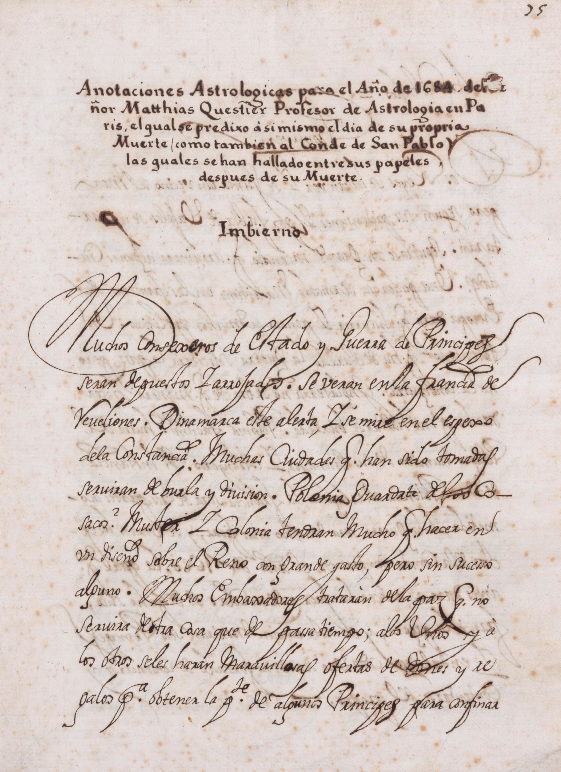 Anotaciones Astrologicas para el Ano de 1684 del Senor Matthias Questier, Profesor [..]
