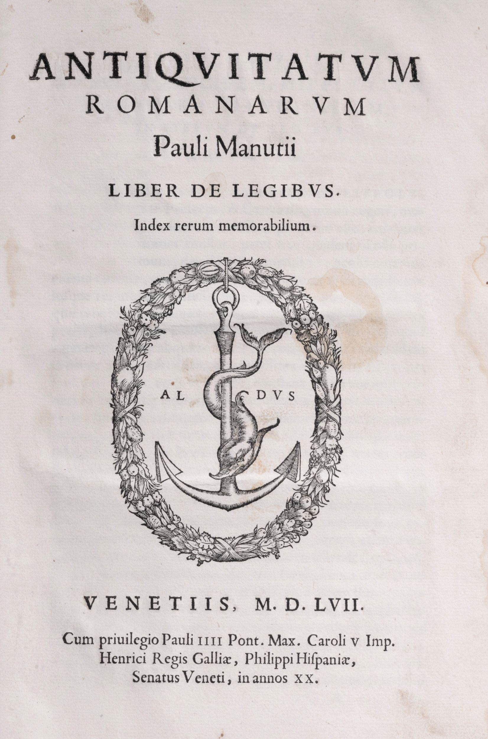 Venezia, [eredi di Aldo], 1557. In Folio, 4 cc. nn.( ultima è bianca); LXXX cc. numer.; 2 cc. nn. Ancora aldina al frontespizio. Legatura in piena pelle, titolo in oro al dorso, tagli colorati.