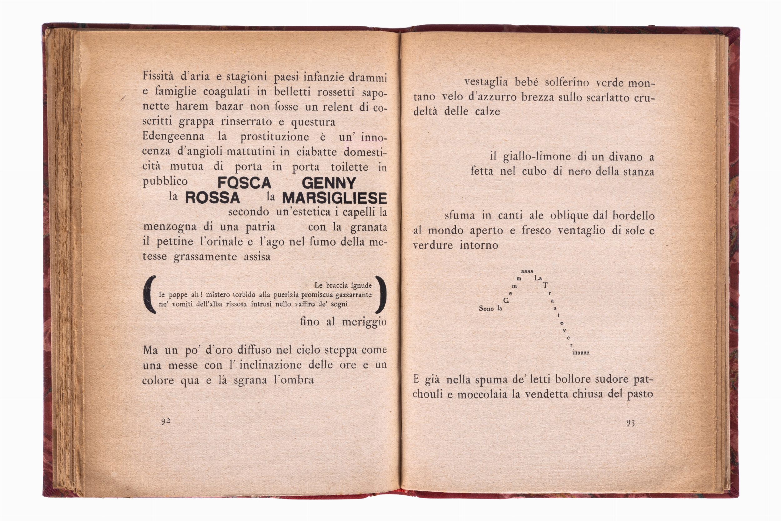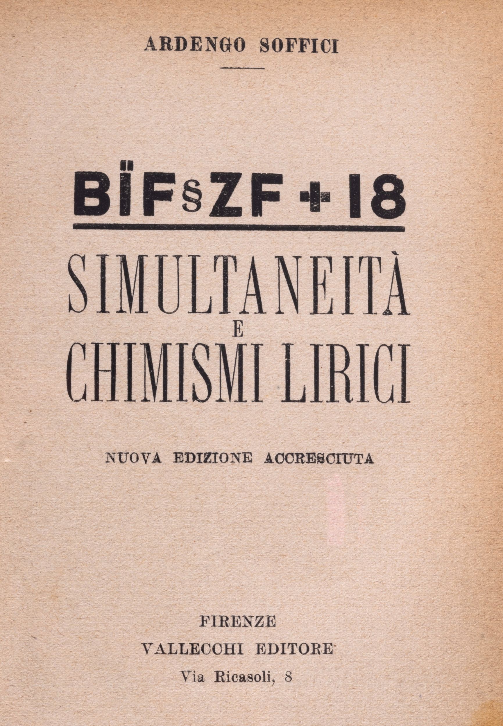 Firenze, Vallecchi Editore, 1919. In 8°. Leggera brunitura marginale, mancante il ritratto dell'autore, lieve alone chiaro al margine di poche carte brossura editoriale in blu e rosso conservata entro legatura in mezzo marocchino e carta marmorizzata, autore e titolo impressi in oro al dorso, lievi difetti al dorso.