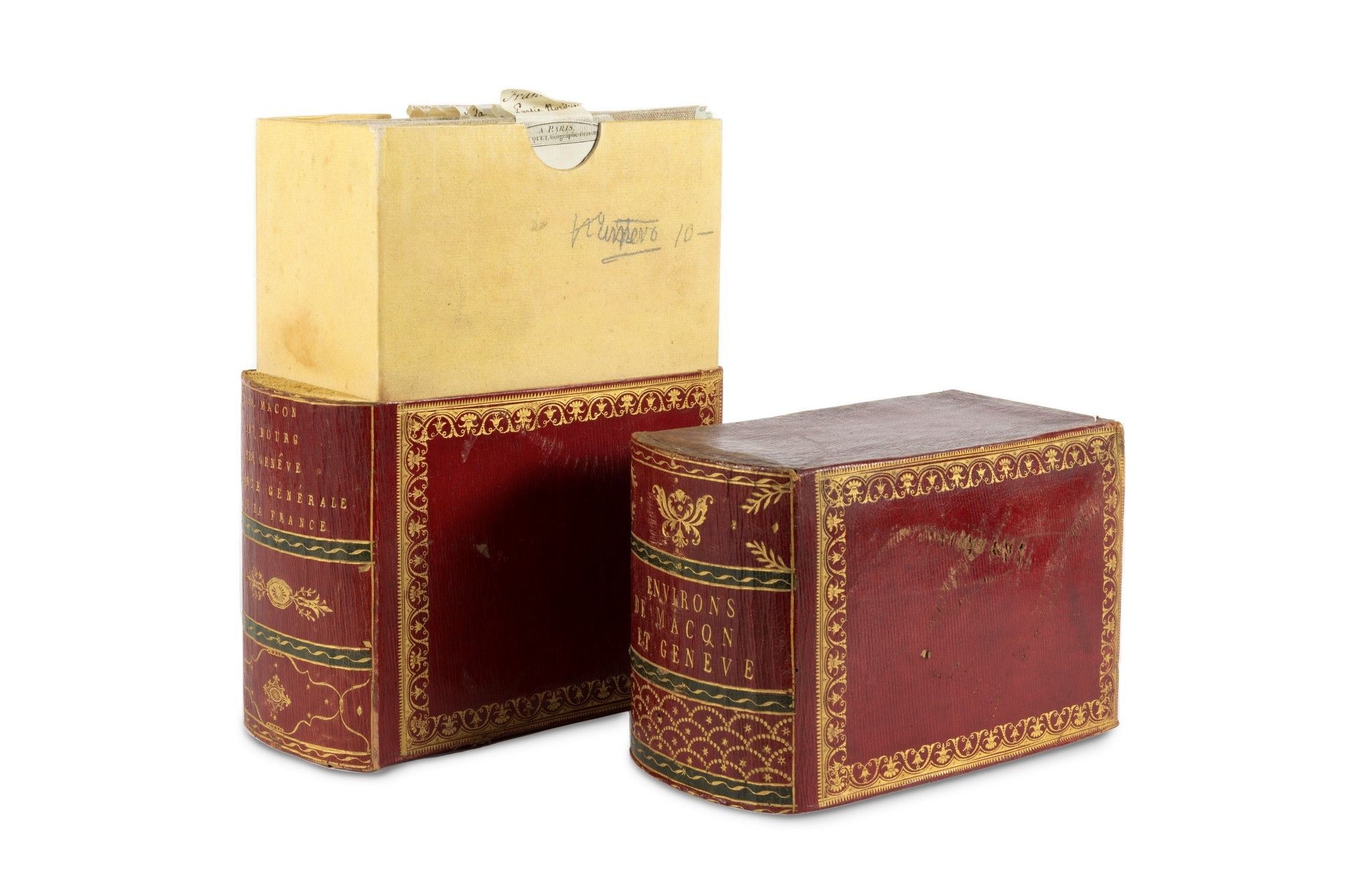 Parigi, Vignon, 1791. Grande Carta geografica non montata, con i riquadri su tela beige e arancio, tassello cartaceo del geografo, elegante custodia a cofanetto in marocchino rosso con decorazioni in oro e verde.