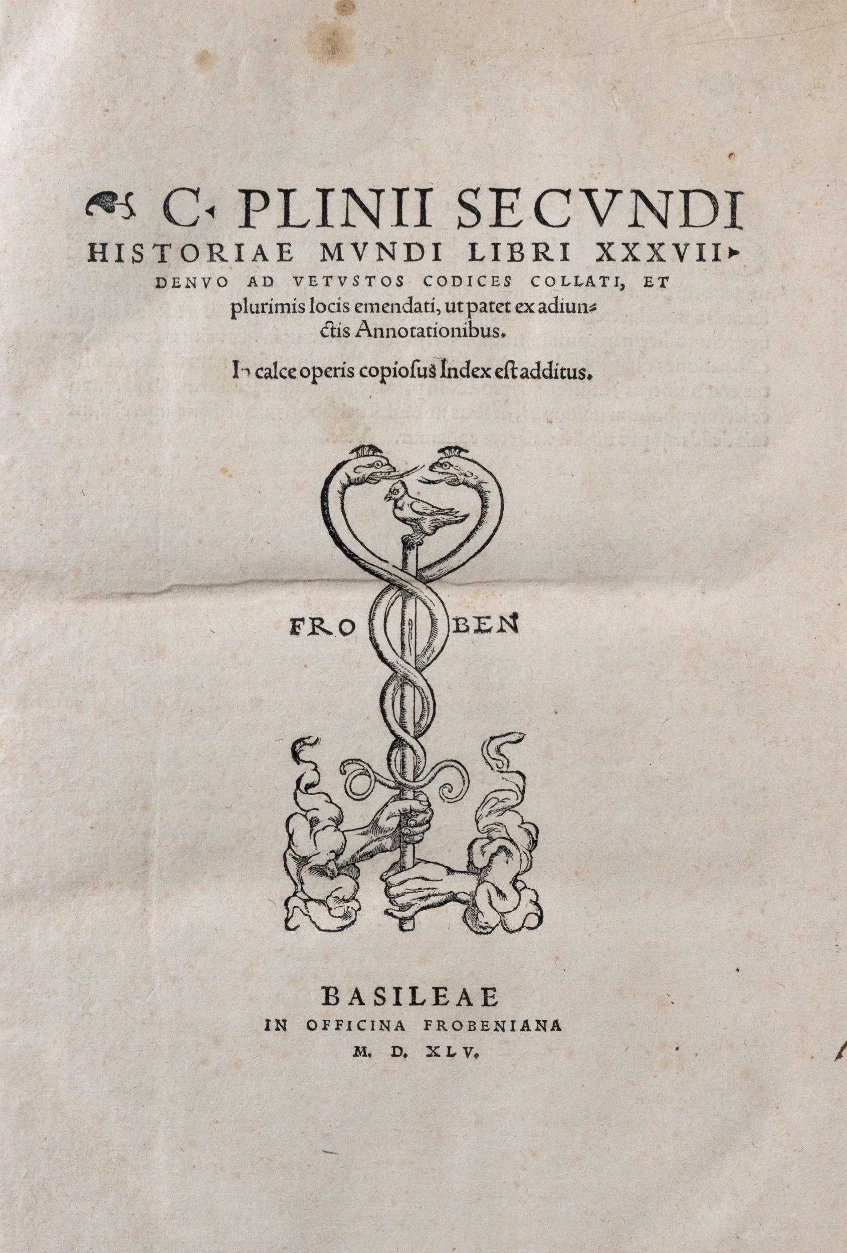 1545 Basilea, Officina Frobeniana, 1545. In 2°. Marca tipografica incisa in legno al frontespizio, leggera brunitura, qualche lieve fioritura e piccola macchia, legatura di epoca successiva in mezza pelle e carta marmorizzata, tagli blu, spellature al dorso, lievi difetti. Ex libris cartaceo al contropiatto.