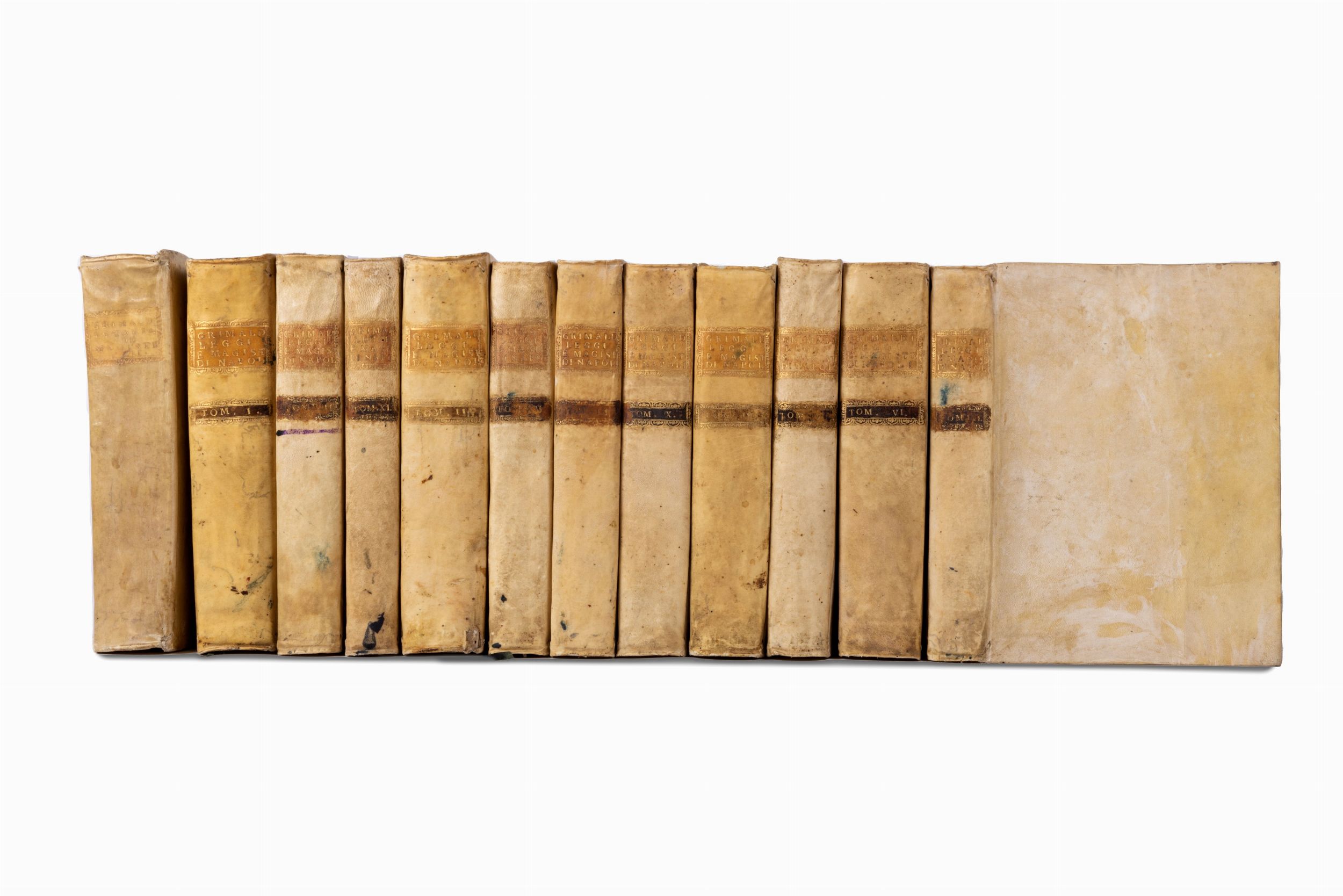 Napoli, Gessari (volumi 1/4 - Simoniana (5/8) - Orsiniana (9/12), 1749 - 1771. In 4°; voll. 12 di circa 600 pagine cadauno. Legatura coeva in piena pergamena, titoli e fregi in oro al dorso.