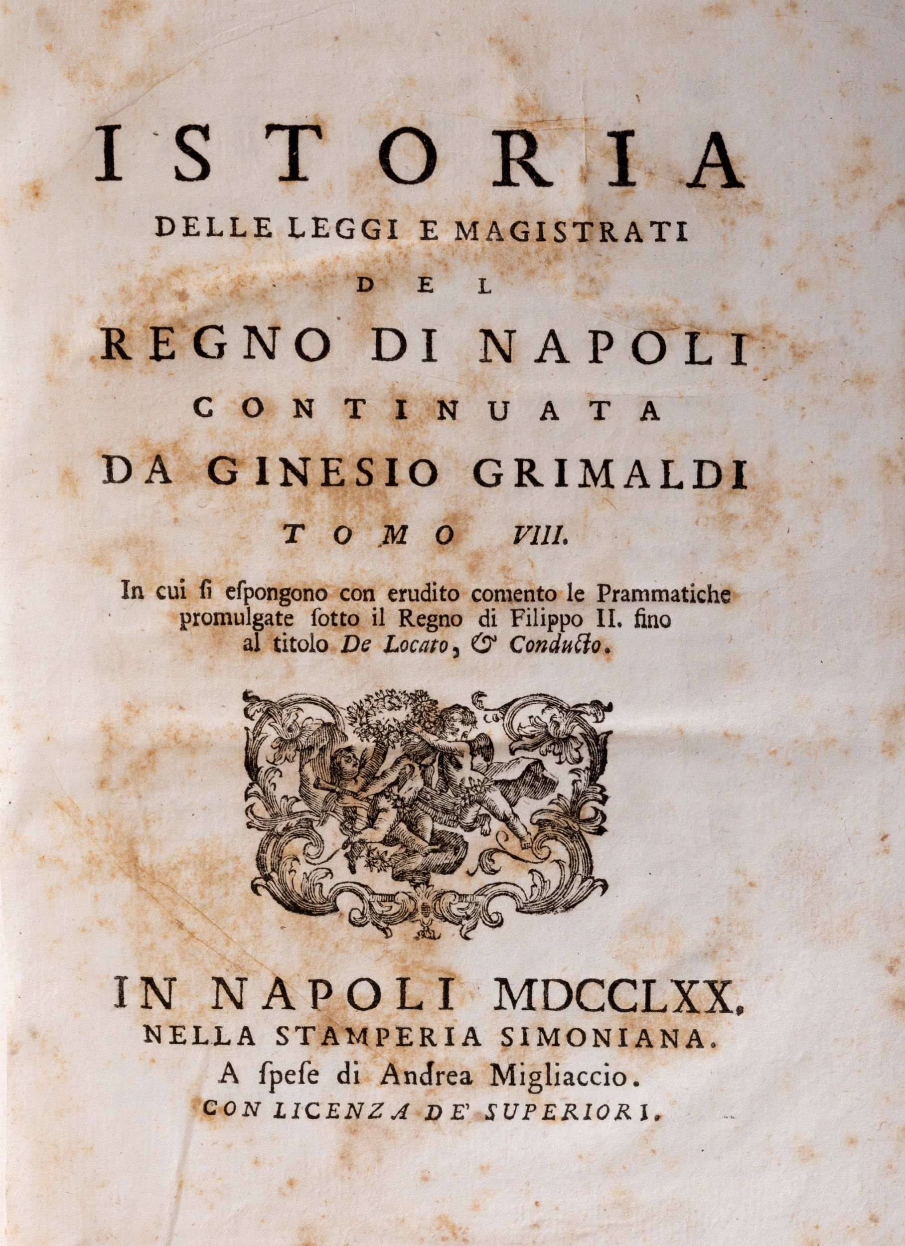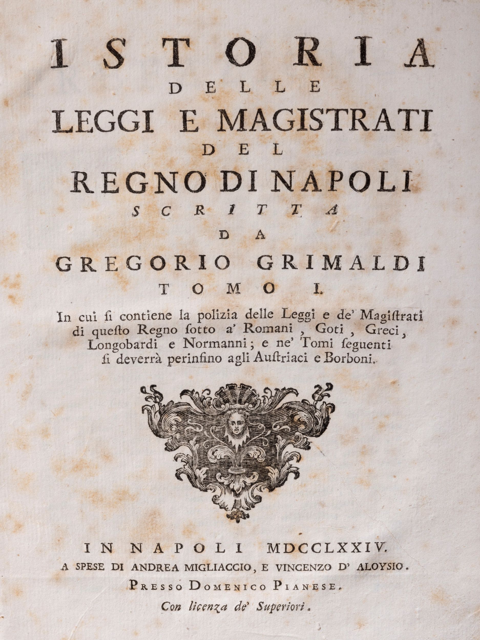 Istoria delle Leggi e Magistrati del Regno di Napoli… in cui si contiene la polizia [..]