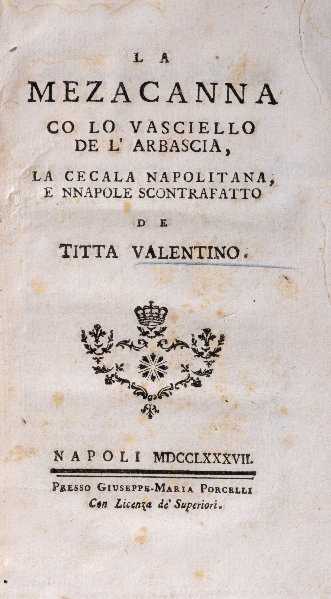 Napoli, Porcelli, 1787. In 16°, pp. 366. Legatura coeva mz. pelle, dorso a cinque scomparti interamente decorato in oro dal titolo e da fregi a motivi geometrici e floreali.