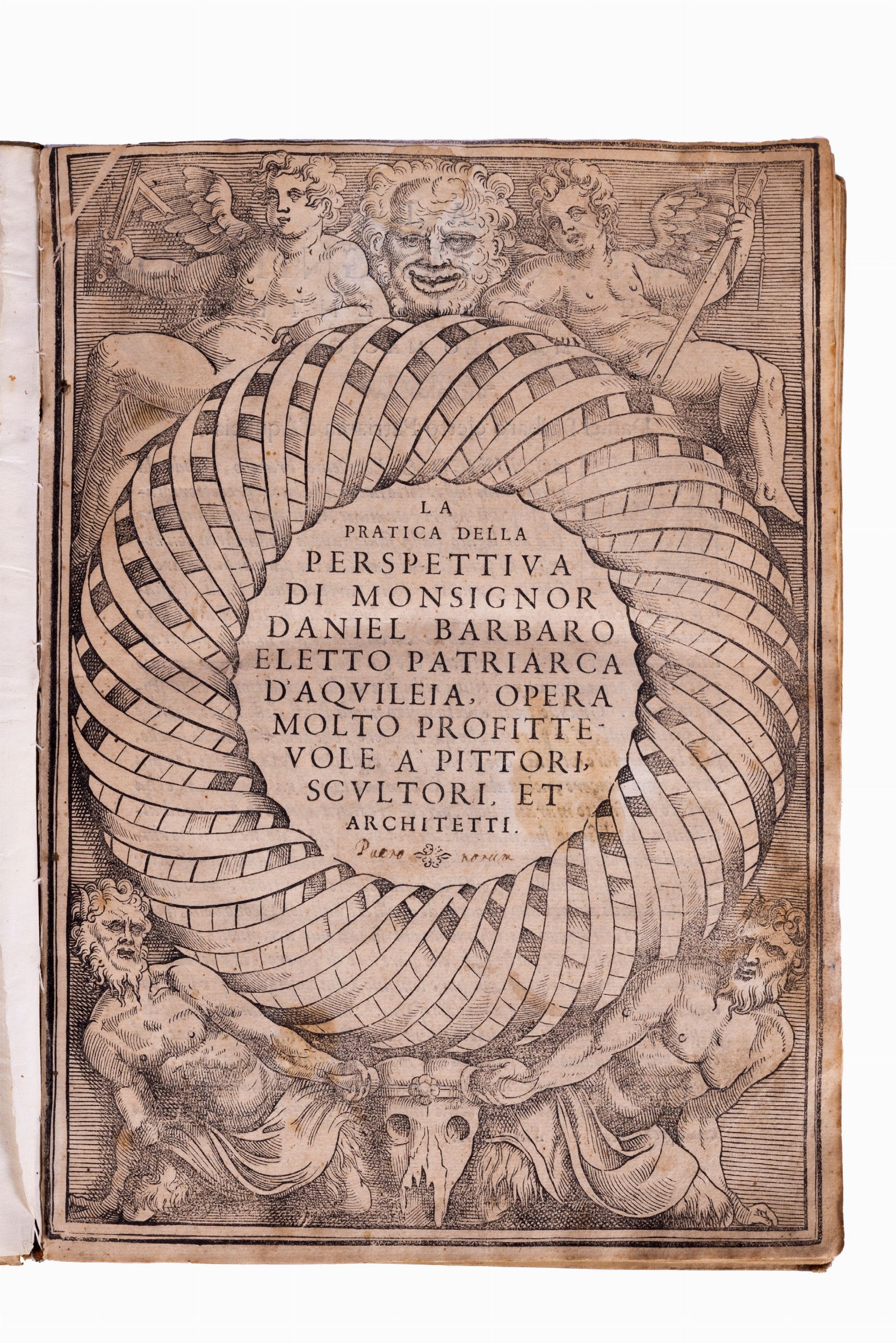 Venezia, Camillo e Rutilio Borgominieri, 1568 (1569). In 2°. Frontespizio xilografico, marca tipografica in fine, capilettera e fregi incisi in legno, con numerose illustrazioni xilografiche nel testo, frontespizio leggermente brunito e con alcune lievi macchie, carta A4 allentata, piccola mancanza all'angolo bianco superiore di Y4, poche carte con arrossature, rare e lievi macchie, legatura coeva in piena pergamena, titolo manoscritto al dorso a 3 nervi, alcune macchie ai piatti, piccola mancanza al dorso, lievi difetti. Nota manoscritta al frontespizio e alla carta A2.