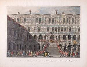 1800 Venezia, G. Battagia [sec XIX ]. Incisione all'acquaforte con coloritura d'epoca, mm 538 x 680, qualche [..]