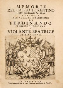 1688 Firenze, Stamperia di S.A.S. alla Condotta, 1688. In 4°, (6cc), 106pp.Occhietto, frontespizio con vignetta [..]