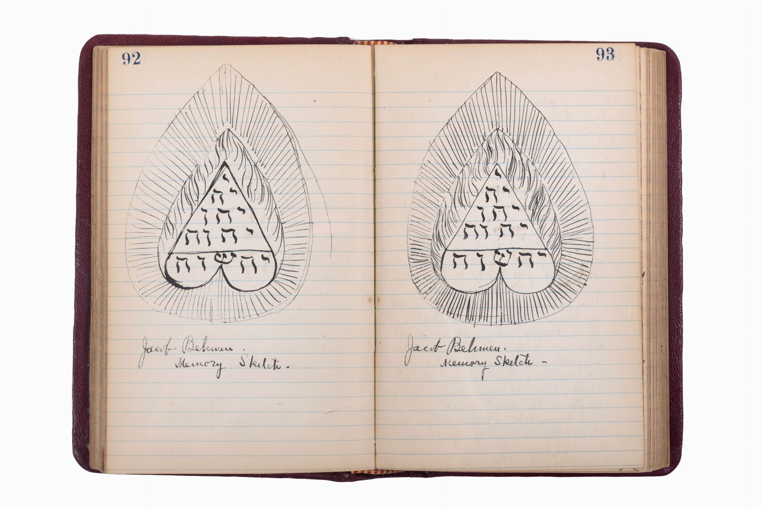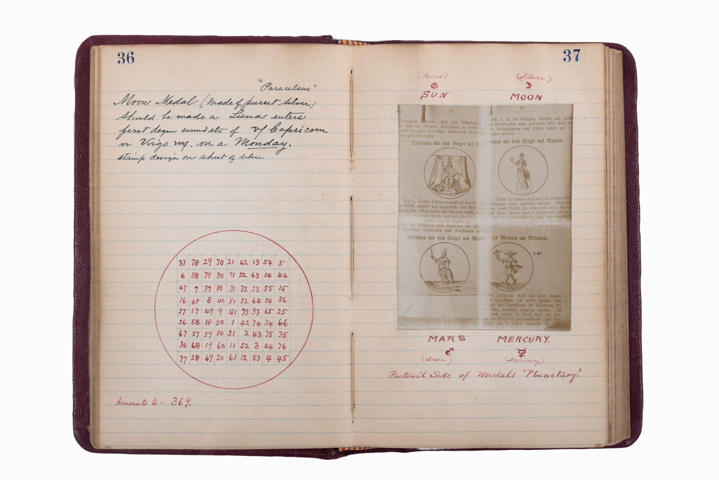 1950 Corposo manoscritto di 288 pagine, con numerazione moderna stampigliata, 198 x 127 mm., vergato da una sola mano, quella dell'astrologo Alexander, disegni, diagrammi, schemi, fotografie incollate etc., legatura in pelle rossa con titolo in oro al dorso.