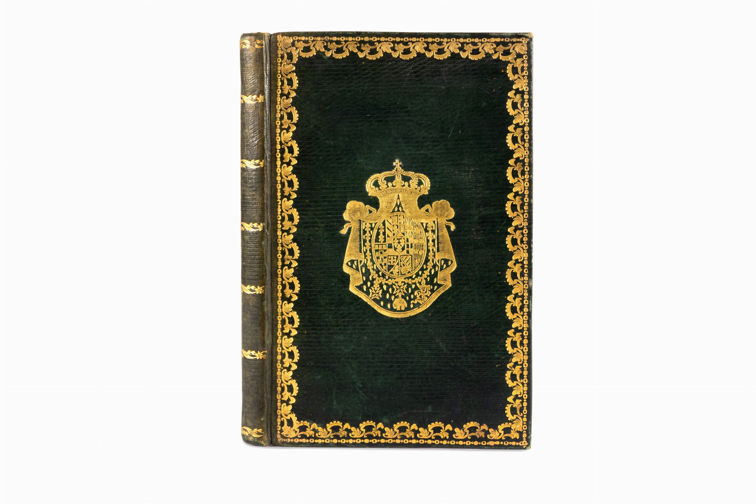1816 Napoli, stamperia della società tipografica, 1816. In 8°. Legatura in marocchino verde, rotella di conchiglie ad inquadrare i piatti, al centro del campo grandi armi di Francesco I delle due Sicilie, tagli dorati, lievi difetti.
