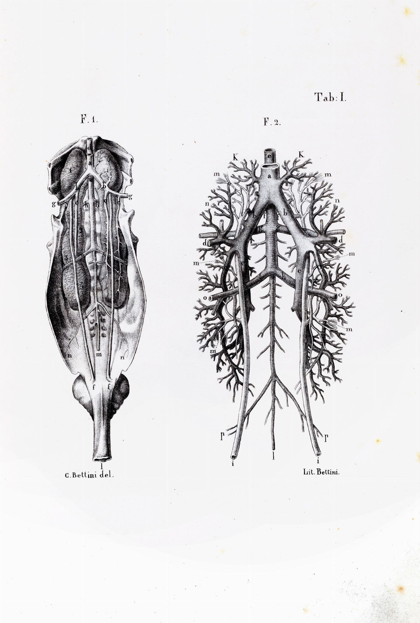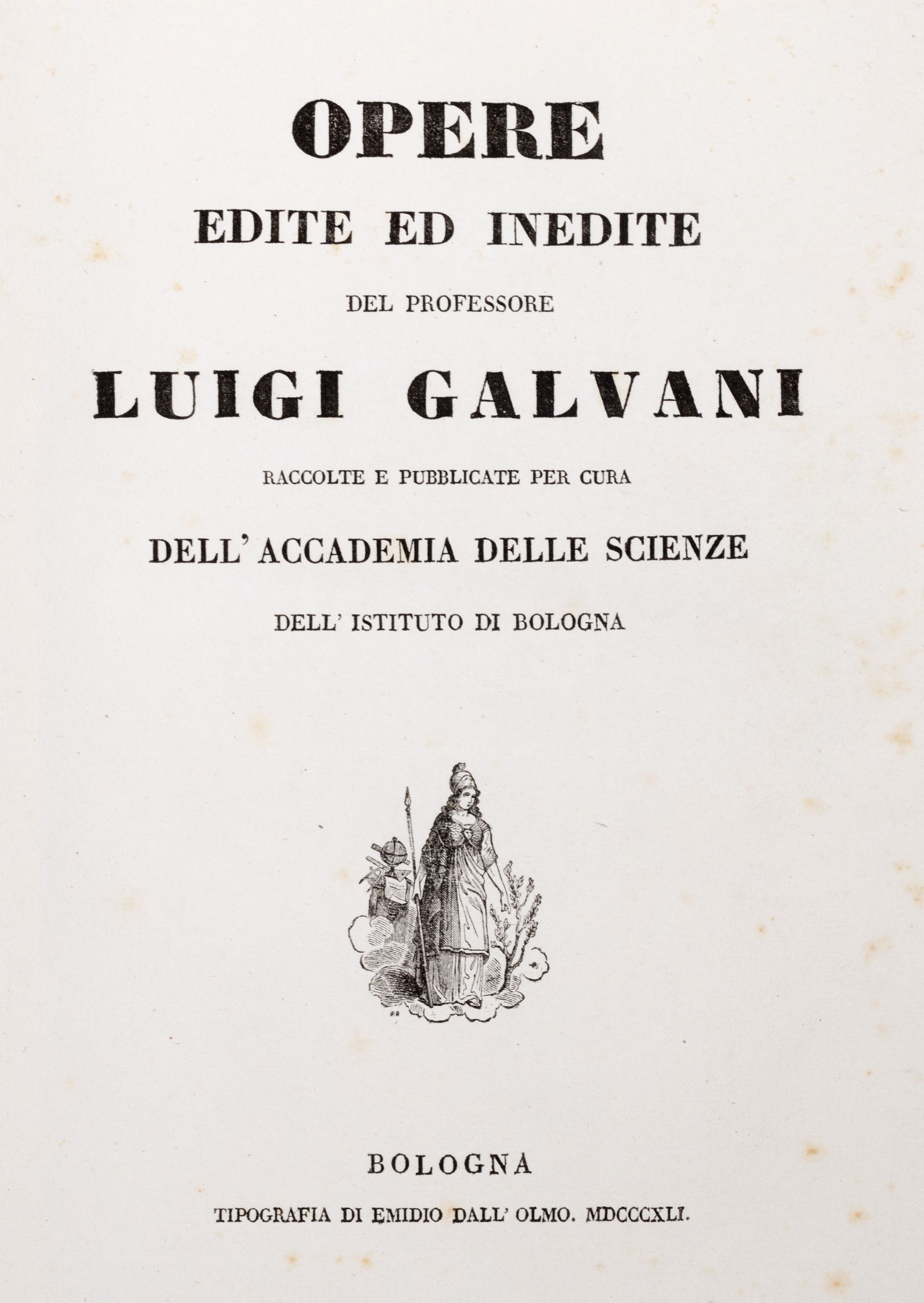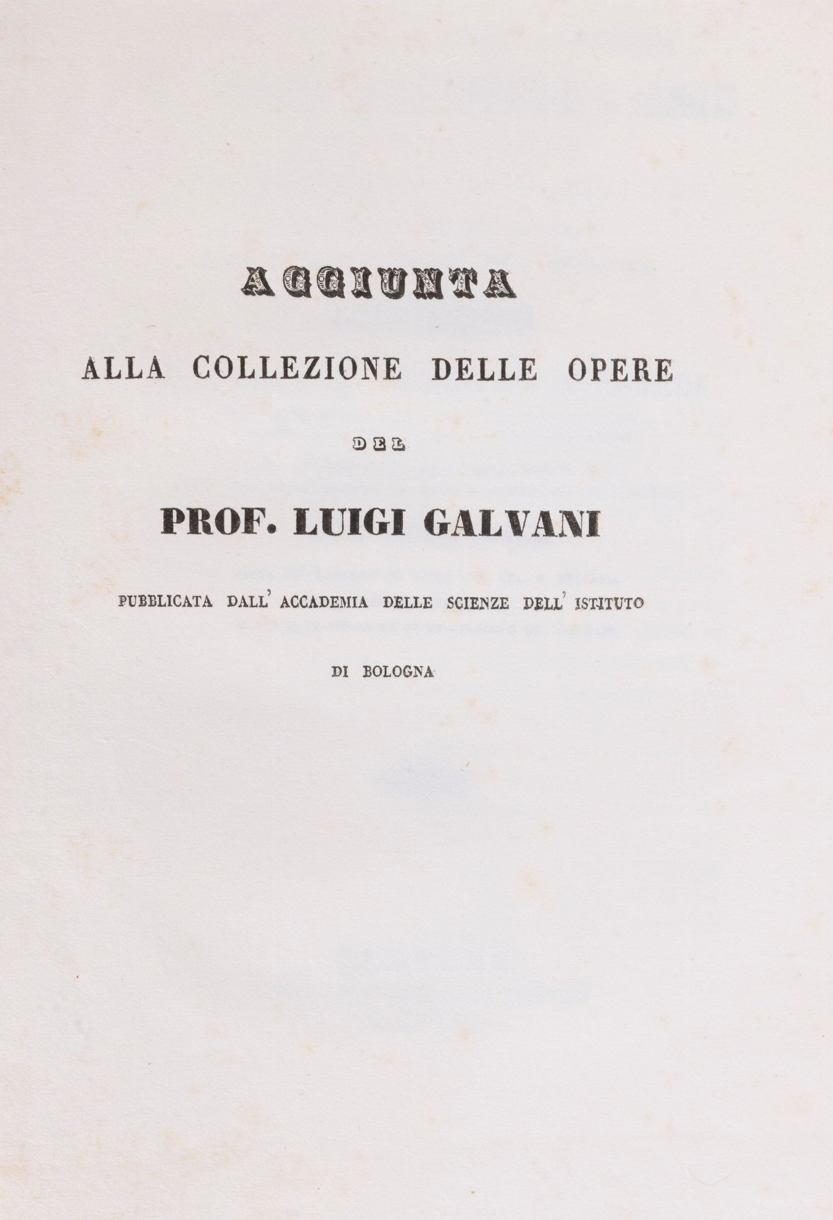 1841 Bologna, Emidio dall'Olmo, 1841. In 4°. Esemplare intonso con un ritratto e una tavola, in fine al volume 9 tavole, di cui alcune ripiegate, lievi fioriture sparse, brossura editoriale, fascicoli parzialmente staccati, lievi difetti. § Insieme nel lotto l'Aggiunta alla collezione delle Opere del Prof. Galbani, Bologna, Emidio dall'Olmo, 1842.
