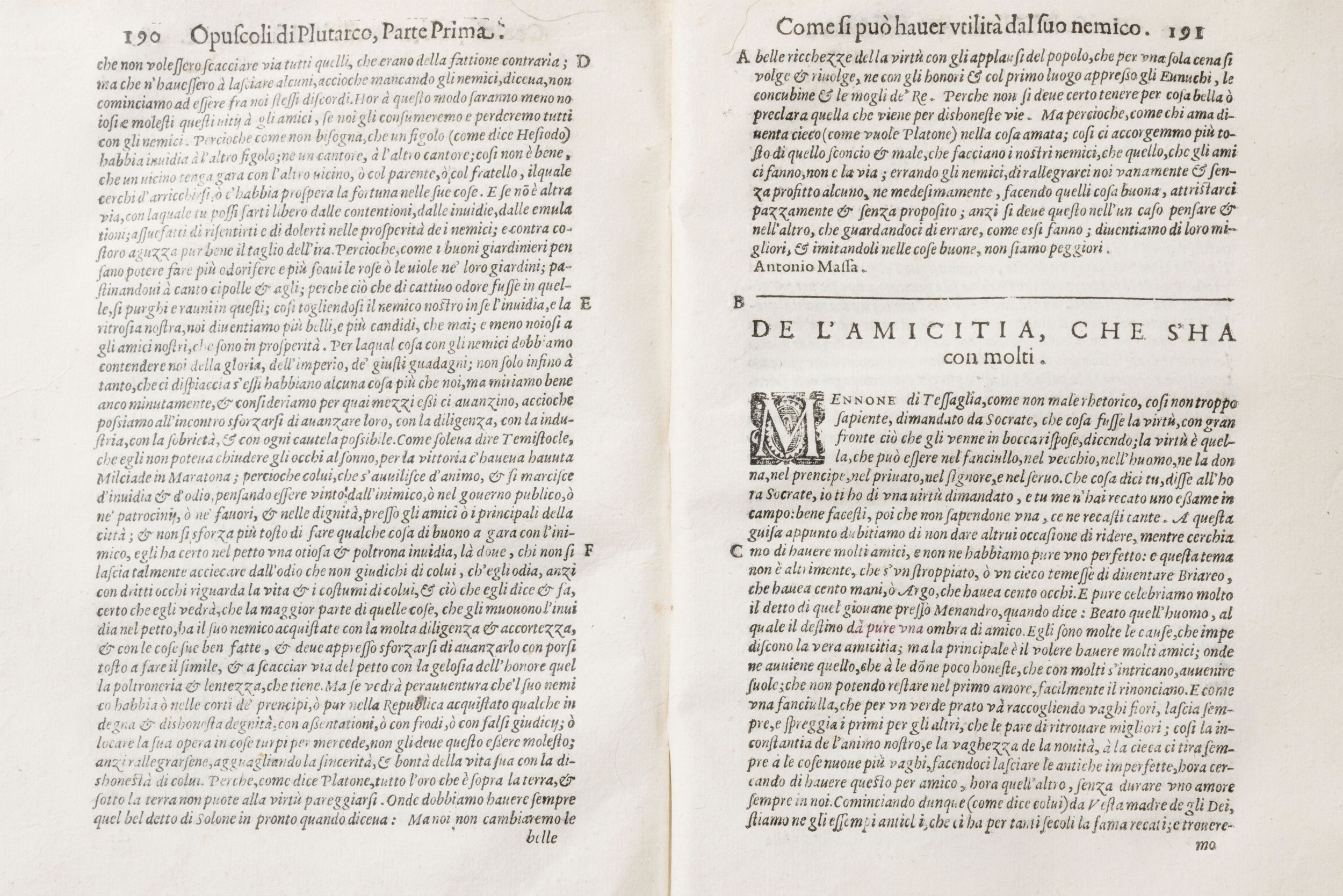 1598 Venezia, Fioravante Prati, 1598. In 4°. Prima parte. Marca tipografica al frontespizio, qualche rara fioritura, tracce di umidità, legatura in cartoncino floscio, sciupato, difetti. Timbro moderno di appartenenza alla carta di guardia e al frontespizio. § Insieme nel lotto la seconda parte dell'opera di diversa edizione: Venezia, Fioravante Prati, 1614. In 4°. Marca al frontespizio, gore d'acqua, presente solo il piatto posteriore della legatura. Timbri di appartenenza al frontespizio e sull'ultima carta.