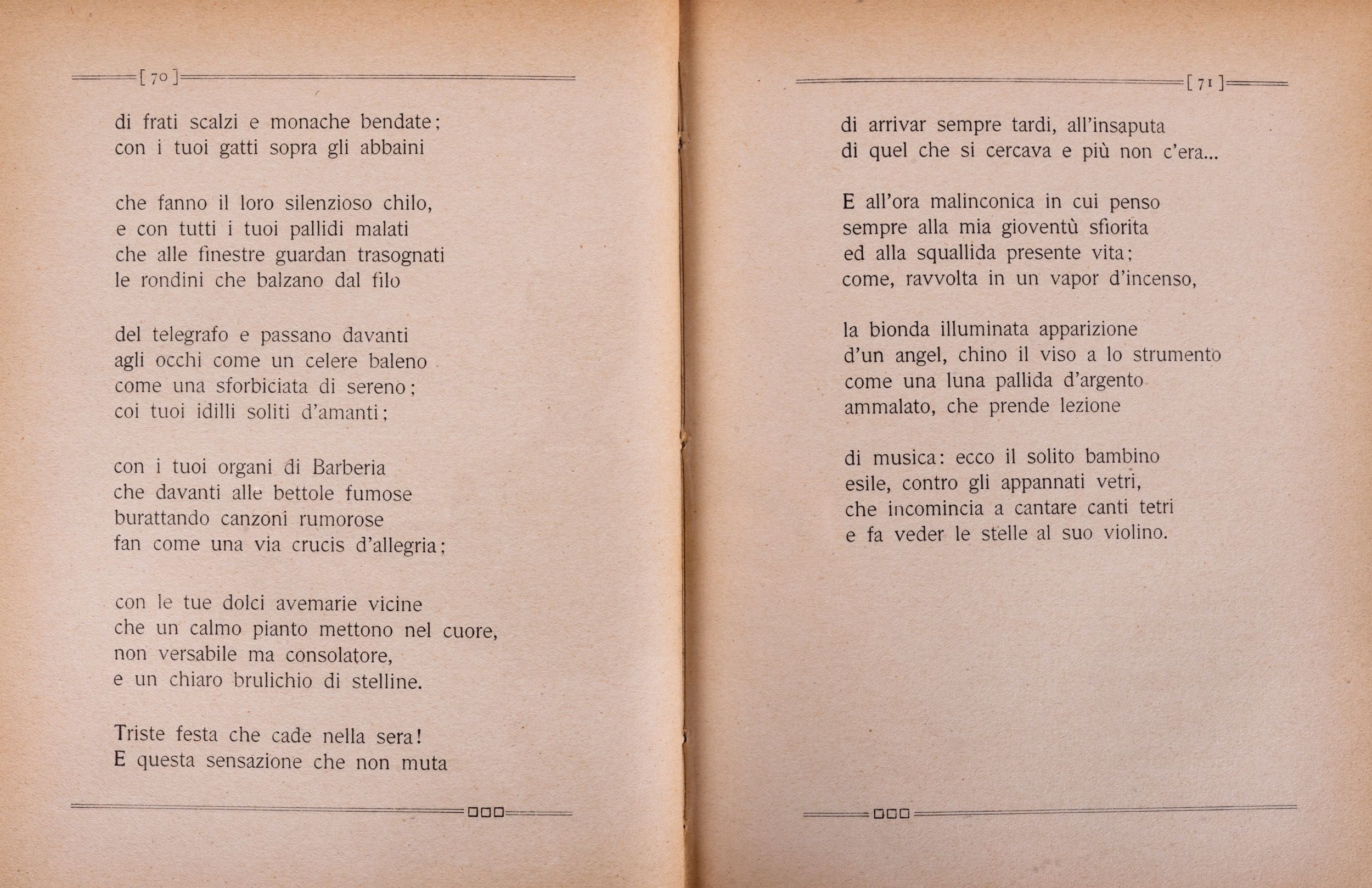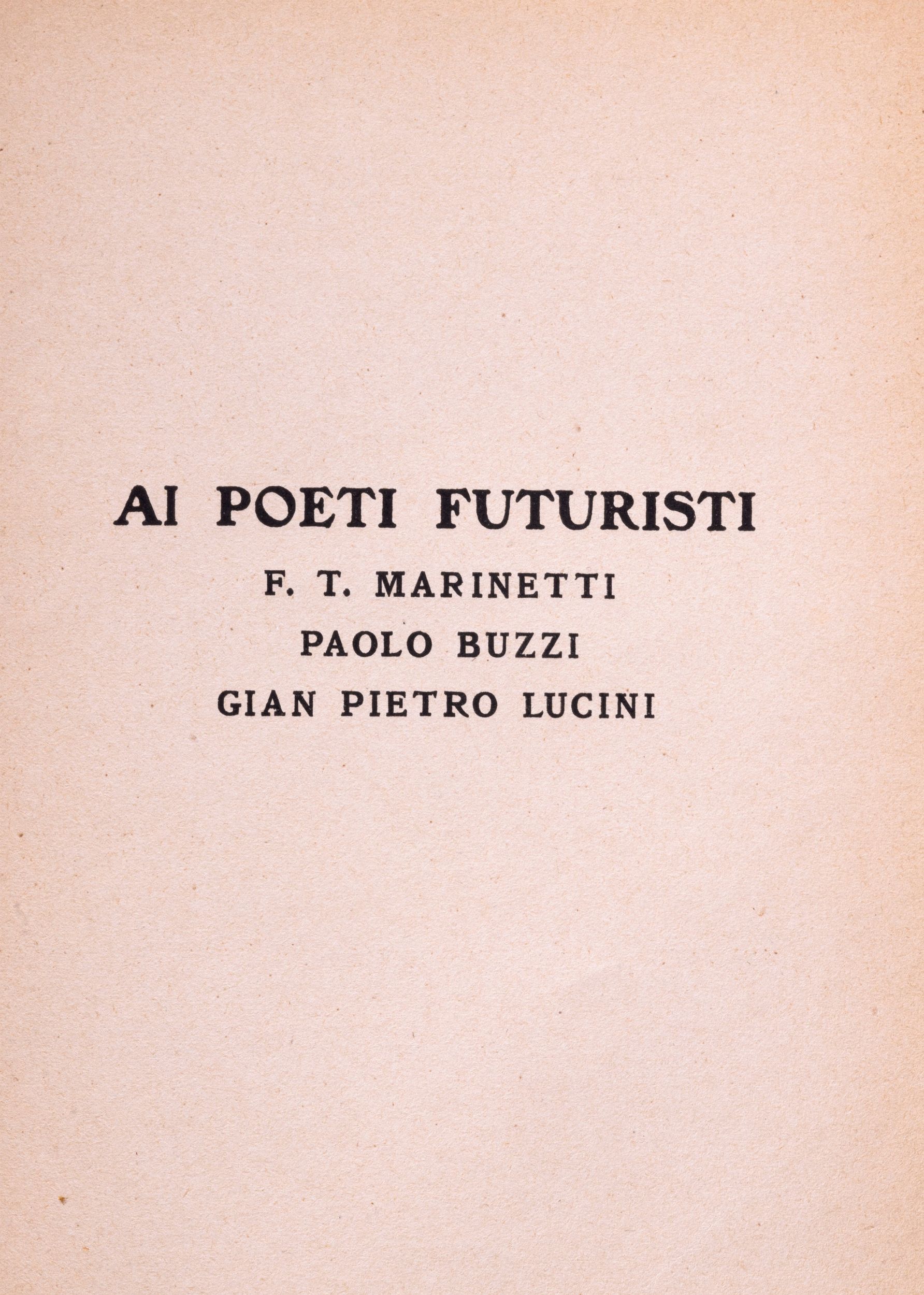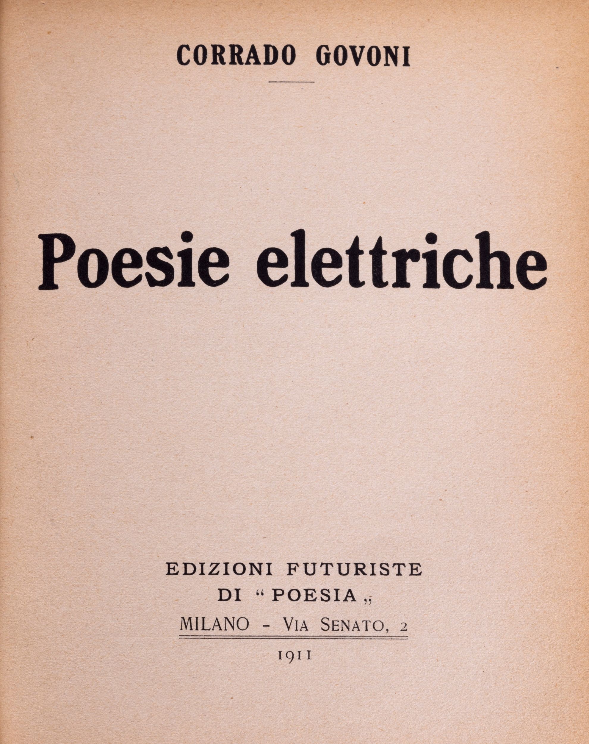 1911 Milano, Edizioni Futuriste di Poesia, 1911. in 16°. Leggera brunitura, lievi difetti all'occhietto, brossura verde stampata in rosso ai piatti conservata entro legatura in mezza pelle e carta marmorizzata, lievi fioriture ai piatti della brossura.