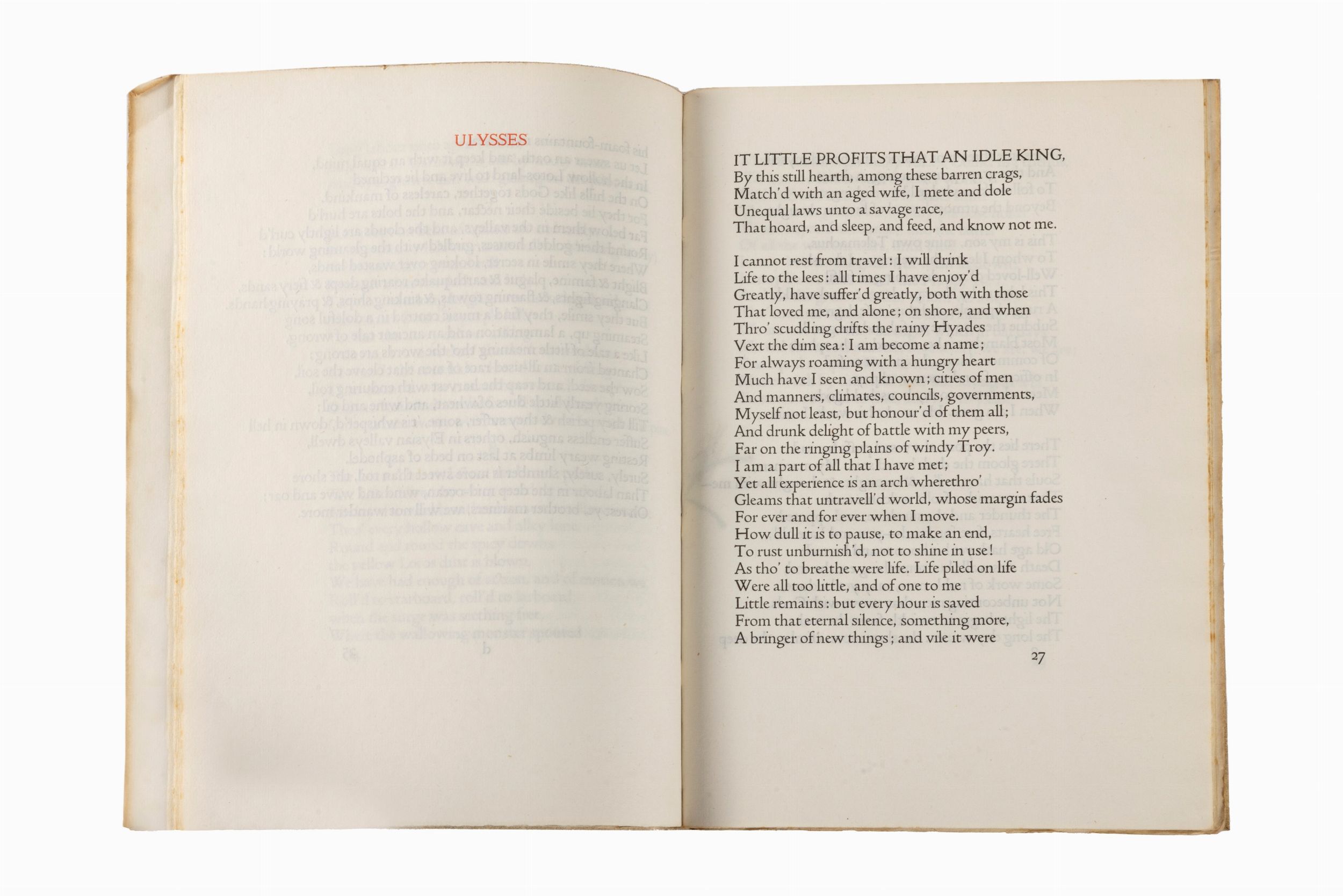Hammersmith, Doves Press, 1902. In 4°. Testo in inchiostro nero e rosso, rilegatura originale in pergamena, autore impresso in oro al dorso. Ex libris cartaceo al contropiatto di Radclyffe Hall e Una Troubridge, conservata la fattura di acquisto del libro dalla Doves Press.
