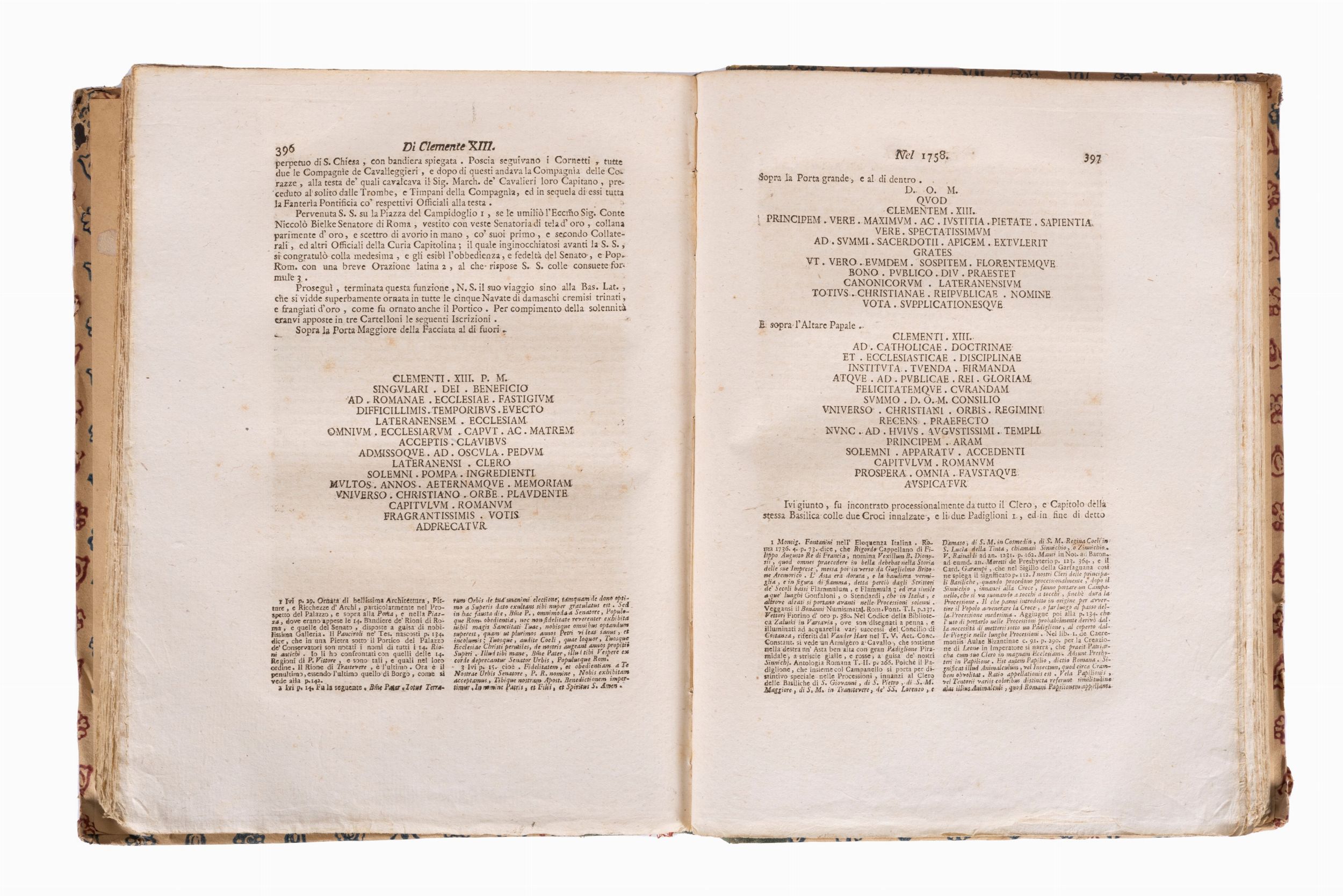1802 Roma, Luigi Lazzarini, 1802. In 2°. Occhietto, ritratto di Pio VII inciso in rame al frontespizio, qualche fioritura, alcune carte con leggera brunitura, legatura coeva in mezzo marocchino verde e carta decorata, autore e titolo impressi in oro entro tassello rosso al dorso liscio, difetti al dorso, segni di usura agli angoli.
